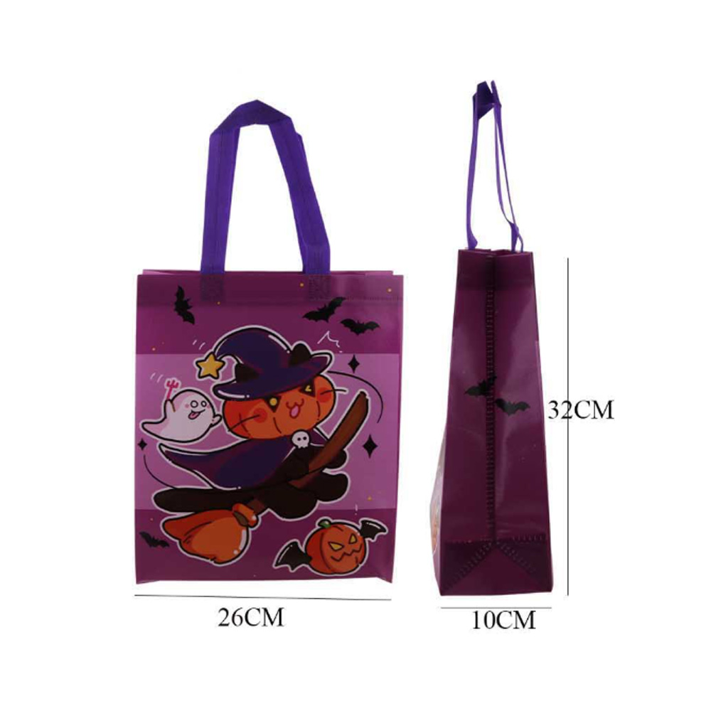 Details • Size : 10" X 13" X 4" • Top Handle Size : 6" L • Delight trick-or-treaters with these Halloween bags featuring a cute witch cat, ghost, pumpkin, and bats. Durable and reusable, each pack includes 12 bags in assorted colors, perfect for candy, small gifts, and party favors. A festive and fun addition to Halloween celebrations for kids and families.