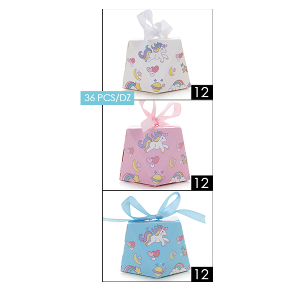 • Whimsical 36-pack unicorn gift boxes with ribbon ties. Perfect for party favors, candy, or small gifts at kids’ birthdays, baby showers, and magical celebrations. Easy to assemble and adorable.
