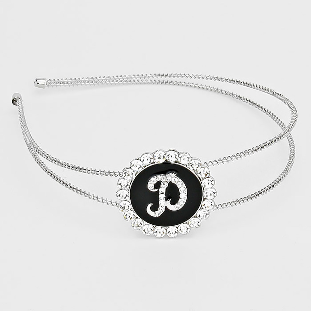 -D- 12PCS - Crystal Accented Initial Monogram Headbands