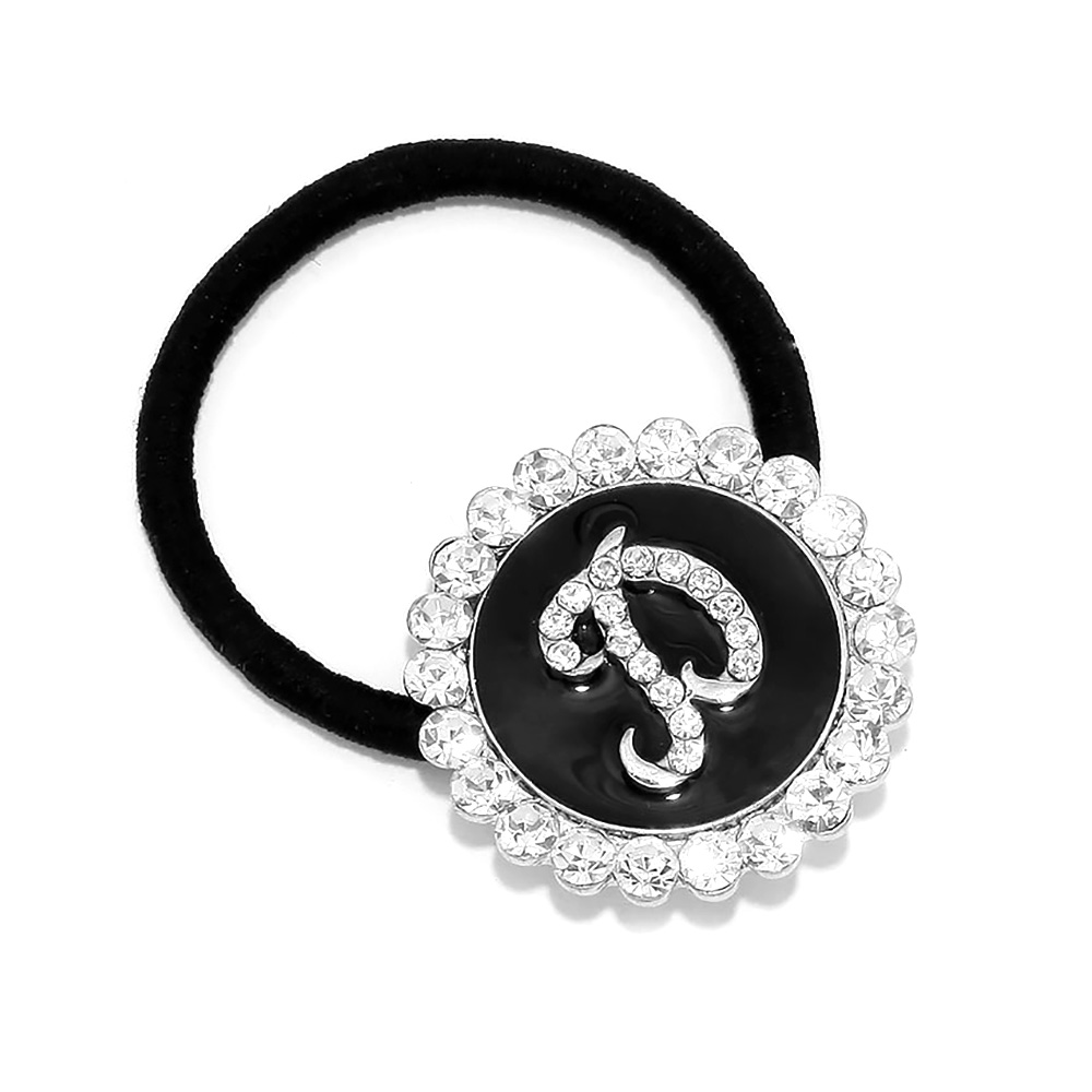 -G- 12PCS - Crystal Accented Initial Monogram Ponytail Hair Bands