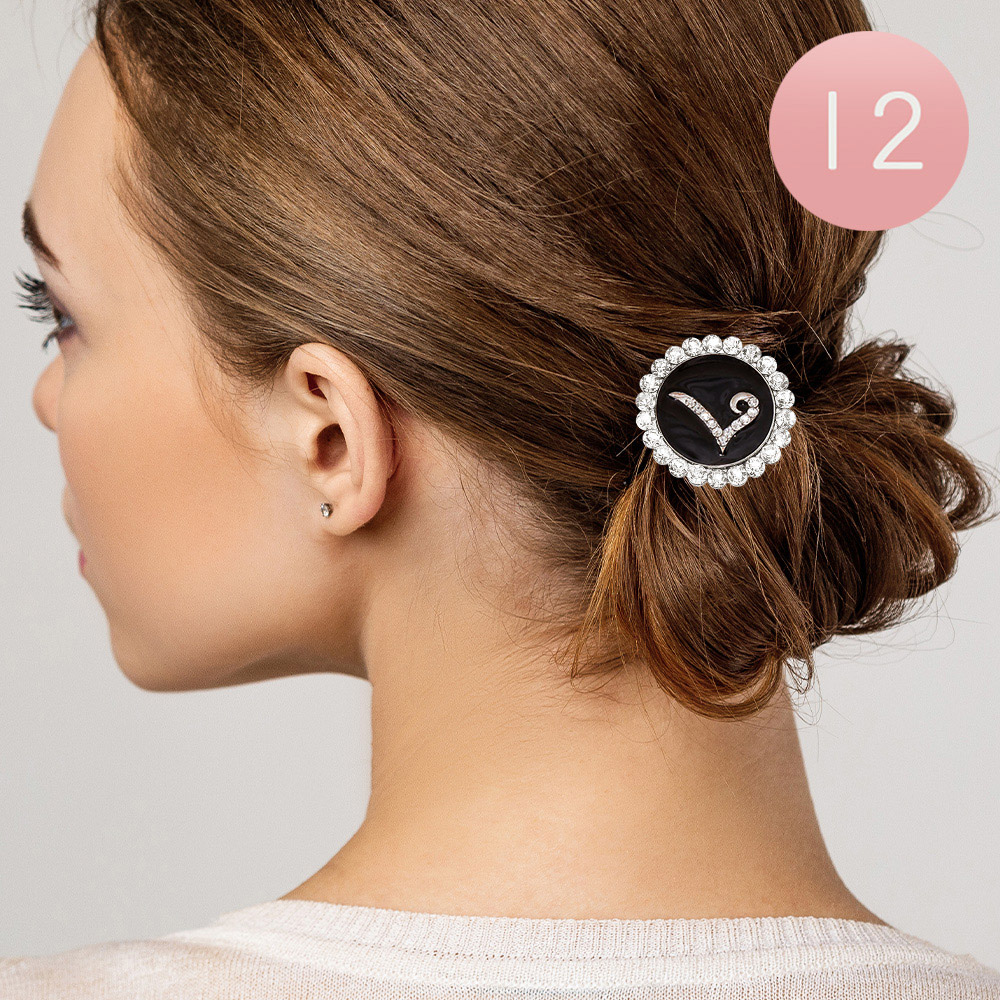 -D- 12PCS - Crystal Accented Initial Monogram Ponytail Hair Bands