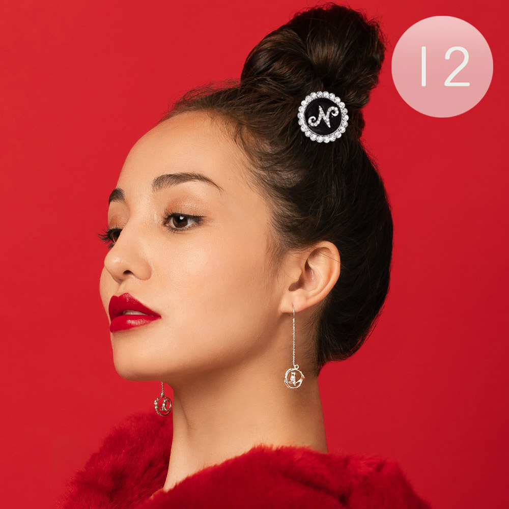 -N- 12PCS - Crystal Accented Initial Monogram Ponytail Hair Bands