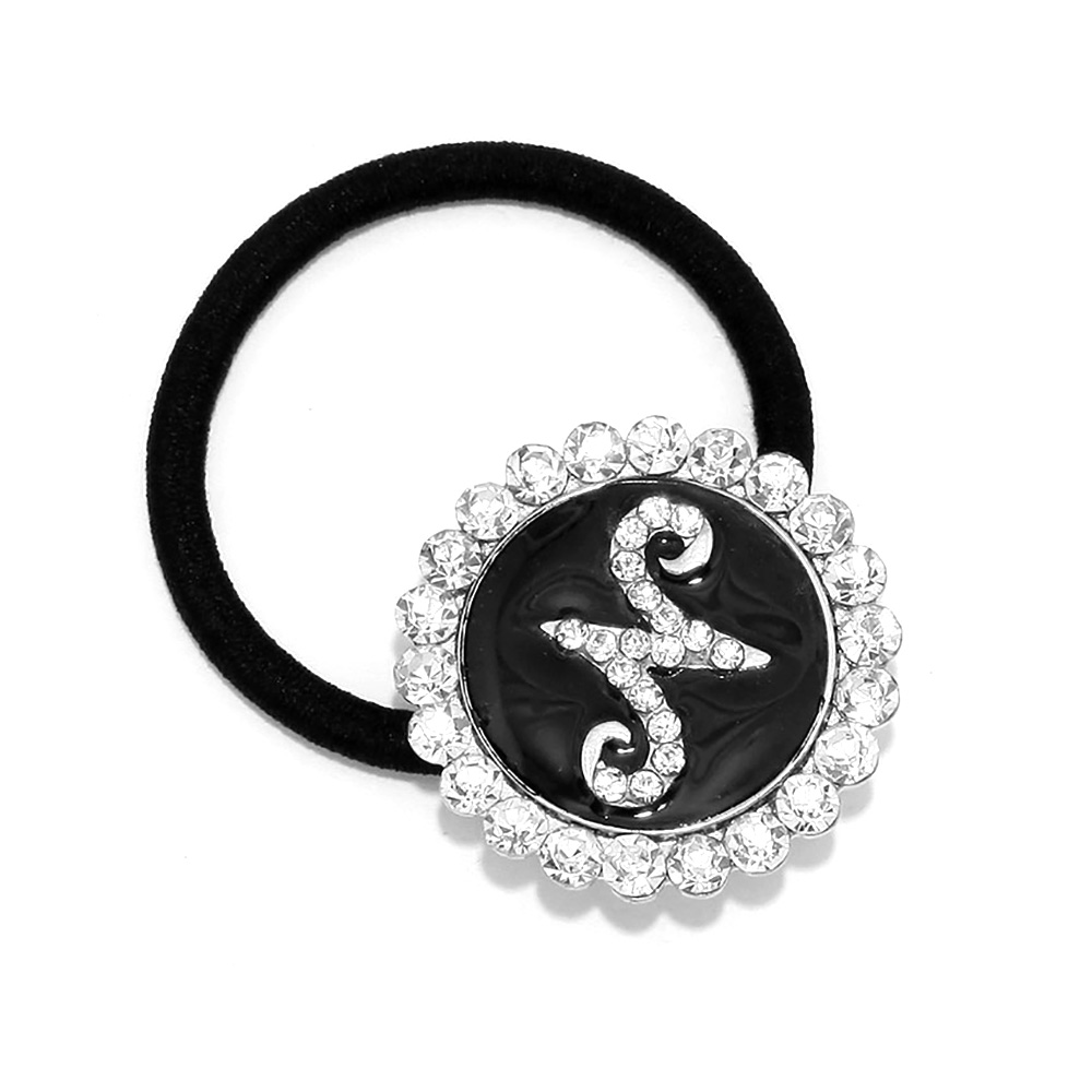 -H- 12PCS - Crystal Accented Initial Monogram Ponytail Hair Bands