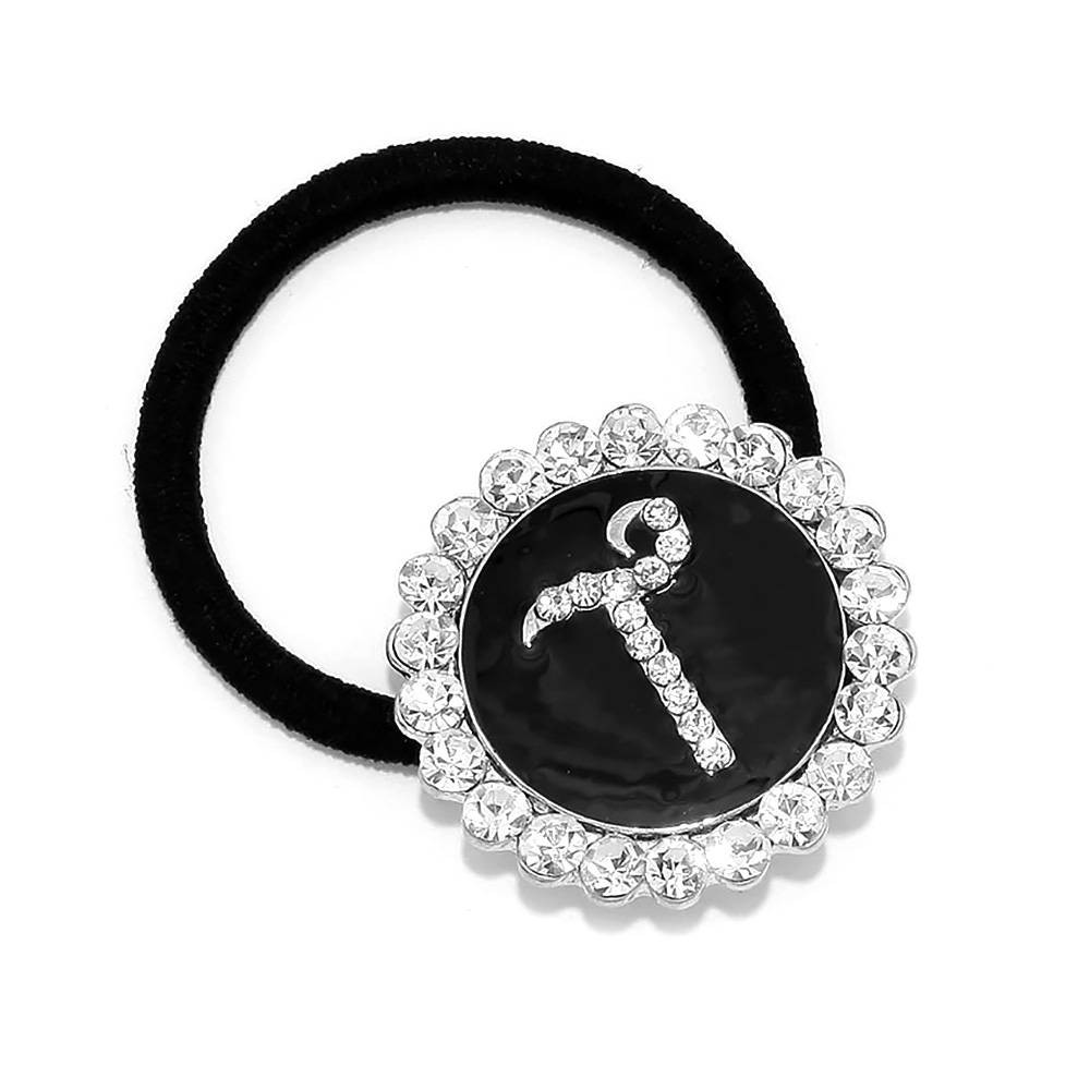 'T' Crystal Accented Initial Monogram Ponytail Hair Band