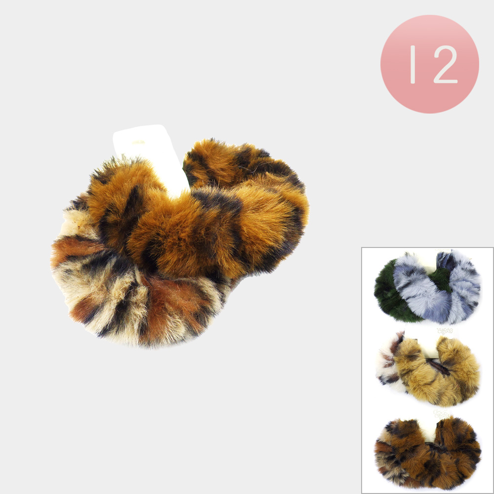 12 SET OF 2 - Faux Fur Scrunchies Hair Bands