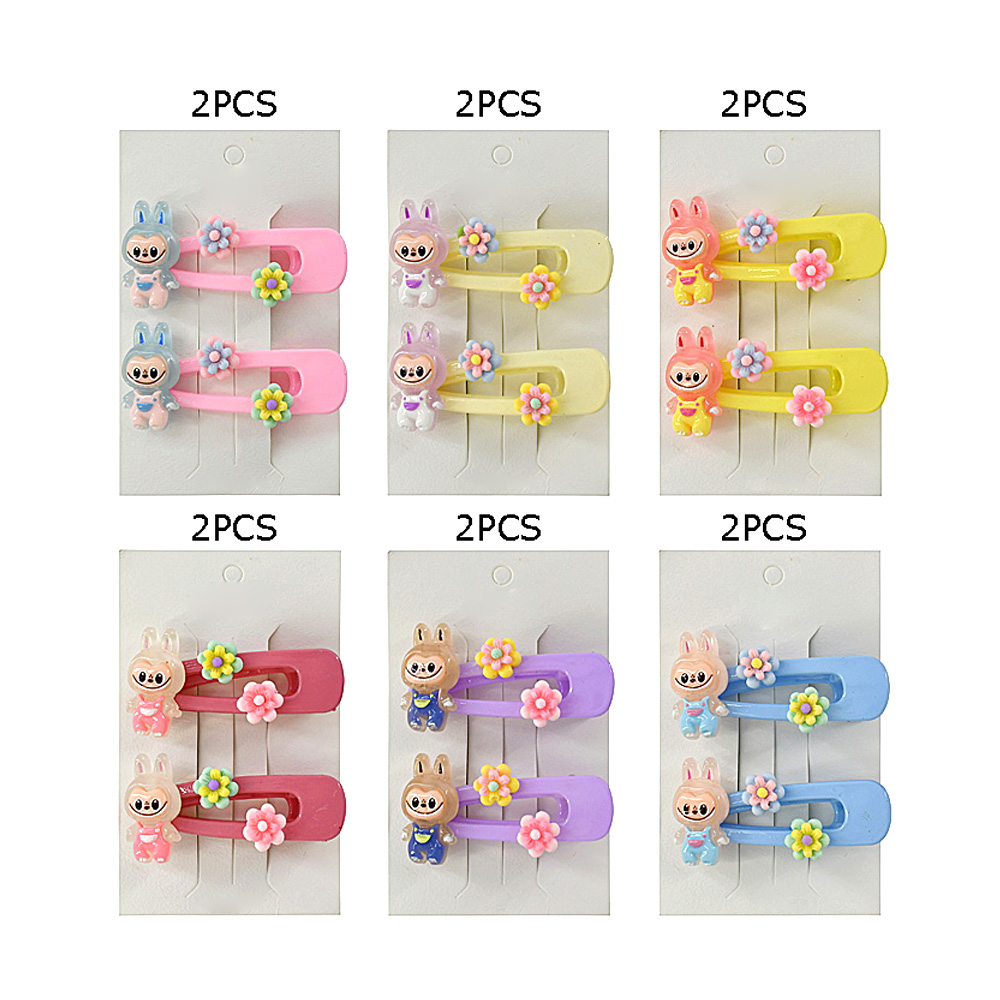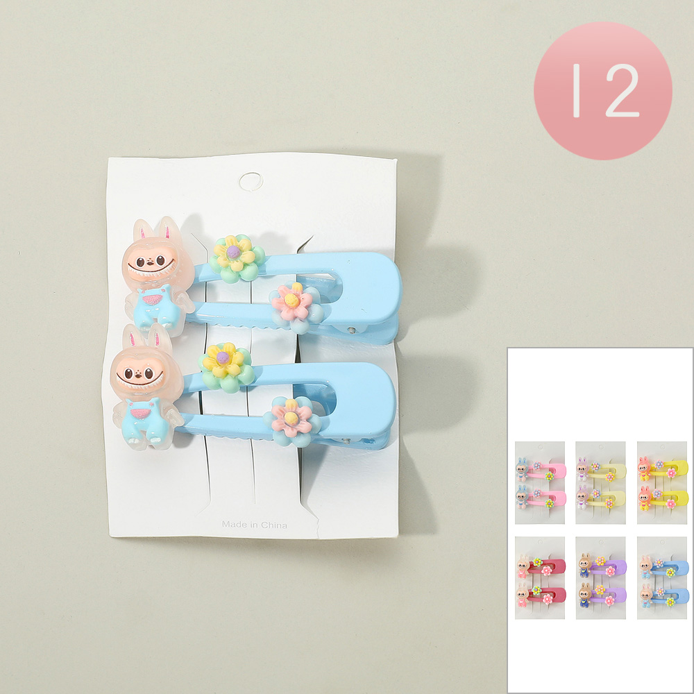Details • Size : 1.25" X 2.5" • Set of 12 hair clips featuring fun cartoon characters and flower accents. Perfect as party favors, gifts, or everyday accessories, these clips add a playful and charming touch to hairstyles while keeping hair neatly in place for school, parties, or casual wear.