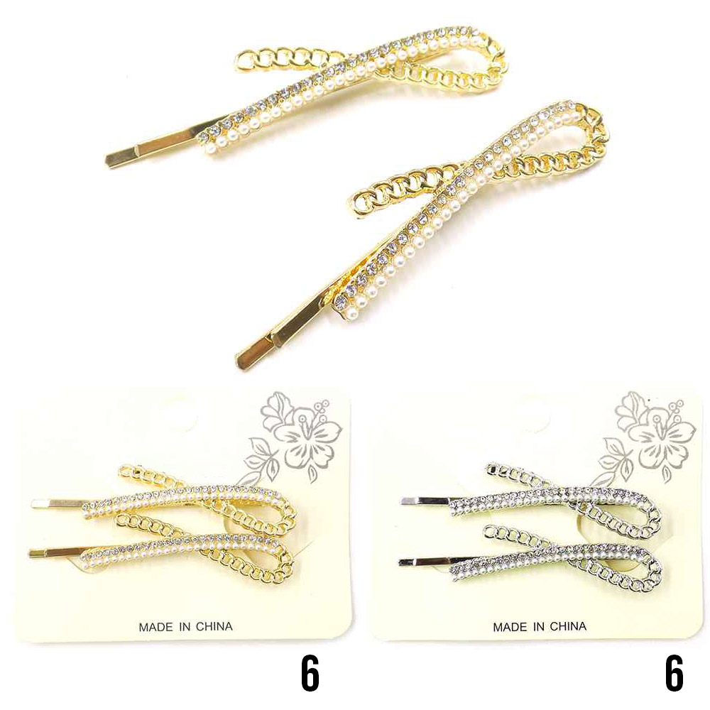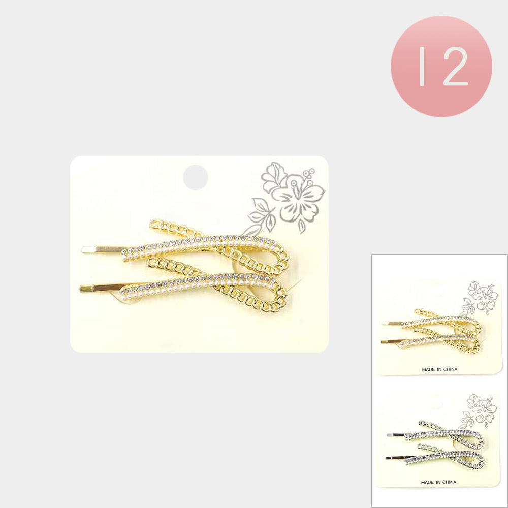 12 SET OF 2 - Pearl Embellished Rhinestone Paved U Shaped Bobbi Pins