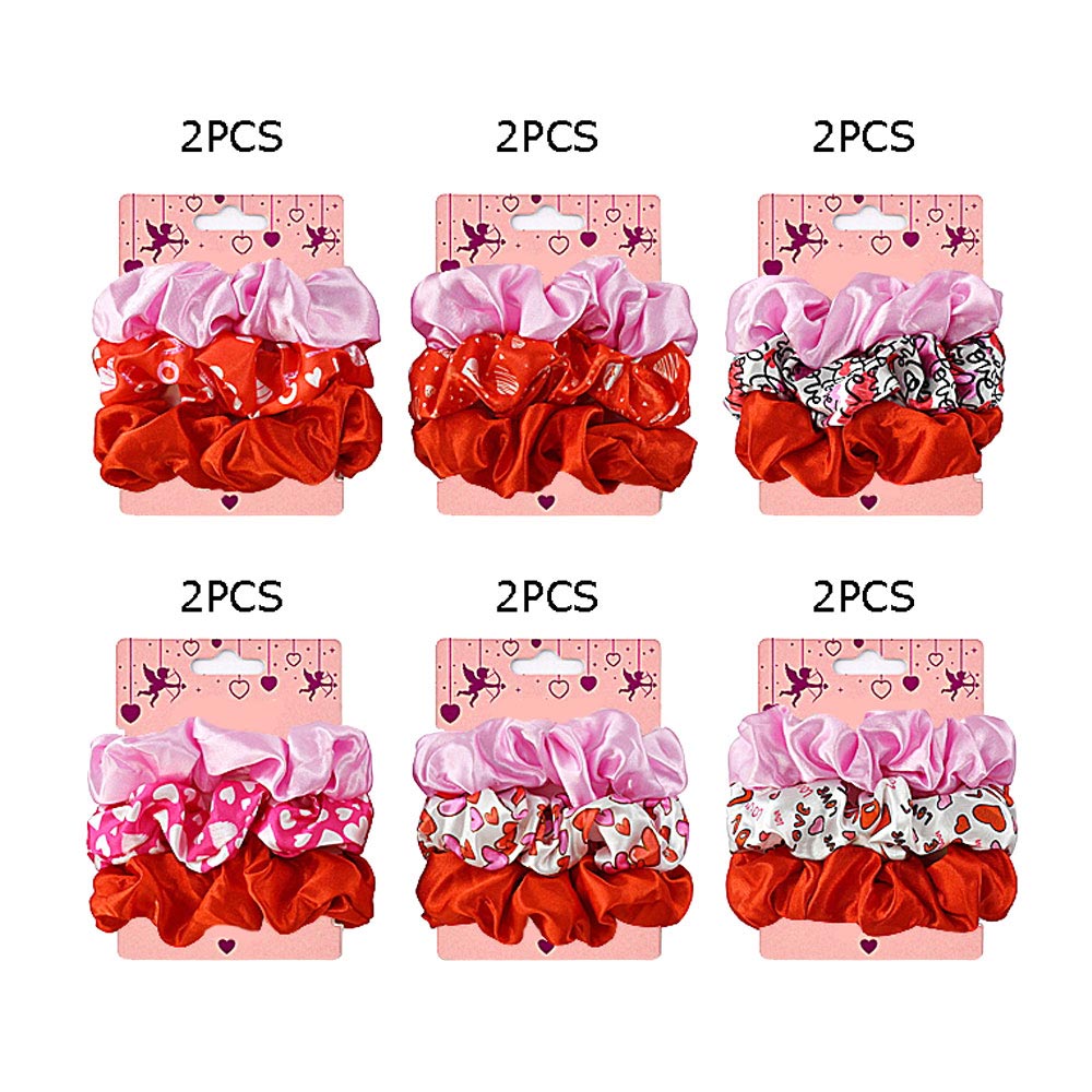 Details • Size : 2" H • Stretchable • This pack of 3 heart-print scrunchies adds a playful, romantic touch to everyday hairstyles. Designed with soft, smooth textures and gentle hold, they are ideal for ponytails, buns, or wrist accessories. Perfect for gifting, collecting, or styling with casual and festive looks.