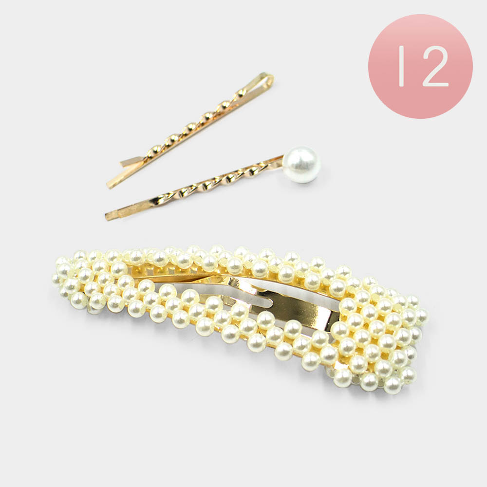 12 SET OF 3 - Pearl Snap Clip / Bobby Pins