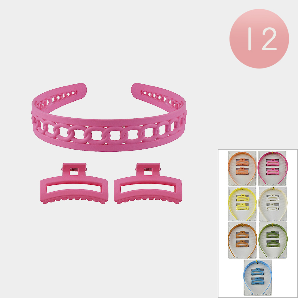 12 SET OF 3 - Plain Headband Hair Claw Clip Sets
