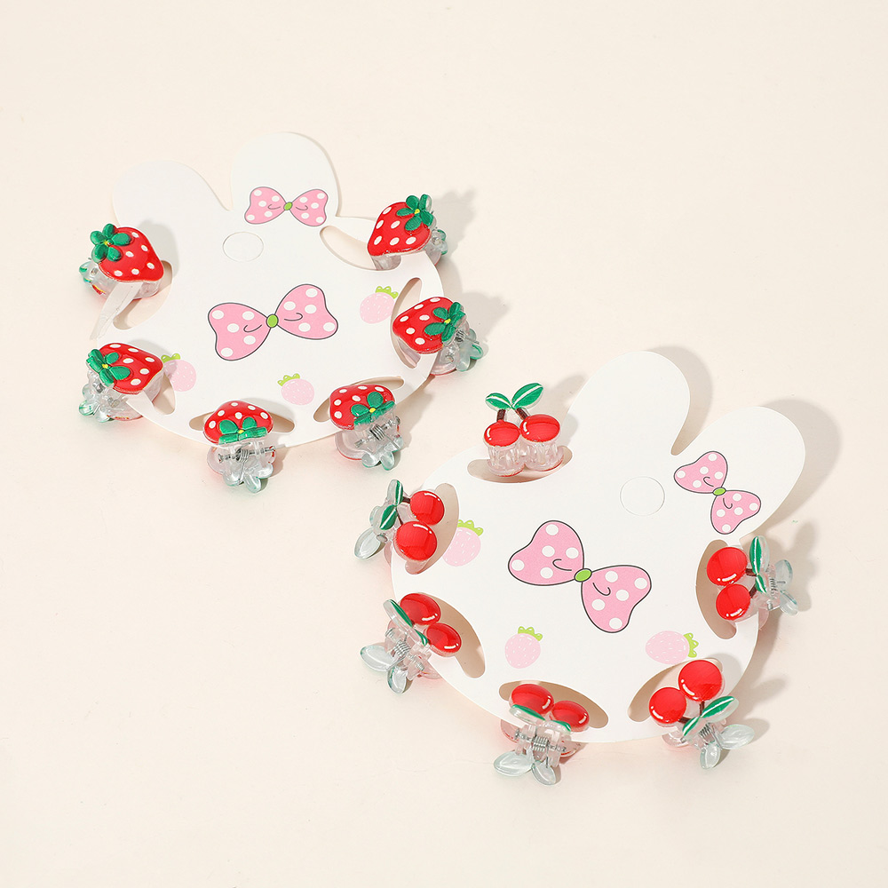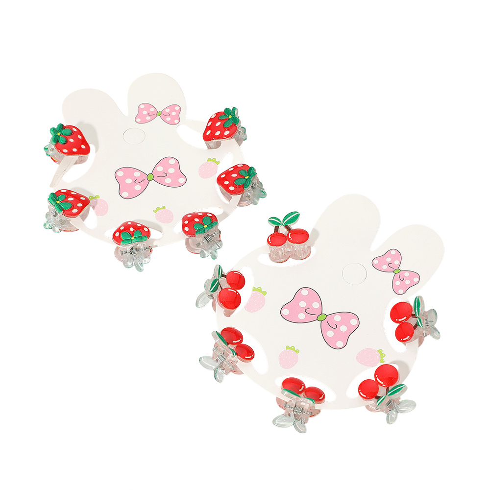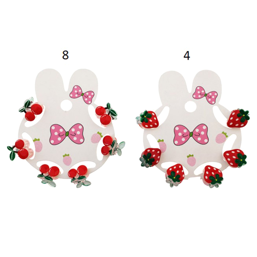 Details • Size 1 : 0.7" X 0.6" • Size 2 : 0.6" X 0.75" • Add a touch of fun with this 12-pack of fruit-themed mini hair claw clips. Featuring playful cherry and strawberry designs, these small clips are perfect for styling toddler or kids' hair with a sweet twist. Great for party favors, gifts, or everyday charm.