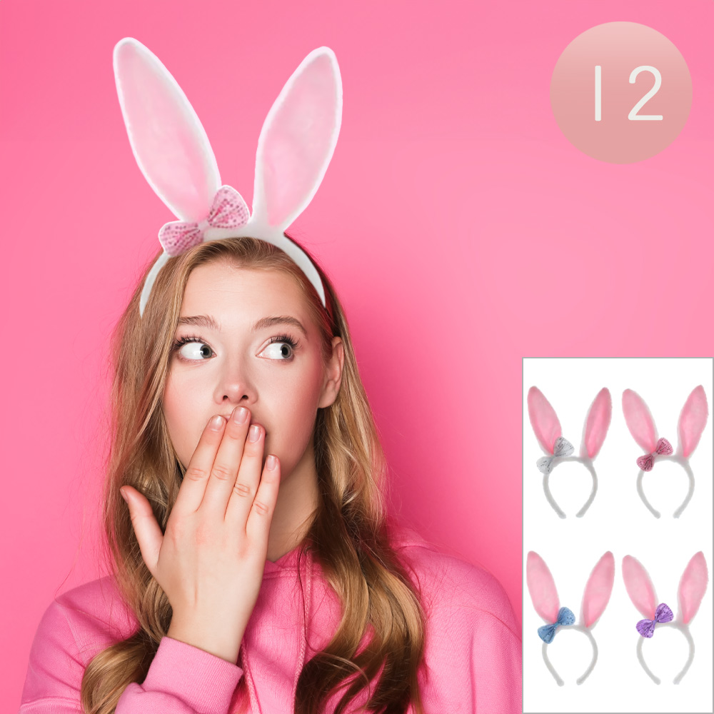 12PCS - Bunny Rabbit Ear with Ribbon Fur Headbands
