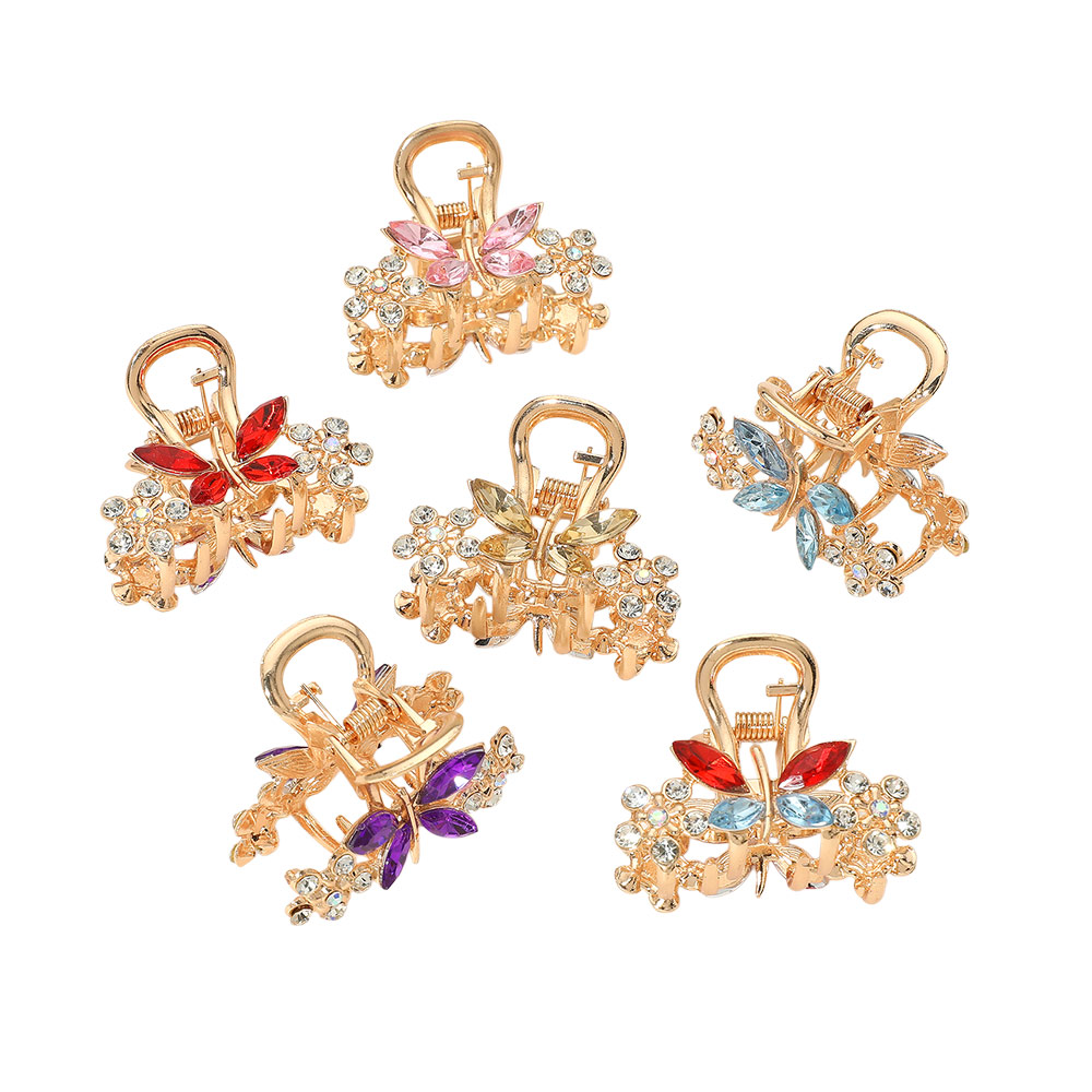• Charming mini claw clips with butterfly and rhinestone detailing, perfect for half-up styles or accenting updos. Secure and easy to use. Comes in a 12-piece assorted set ideal for styling and gifting.