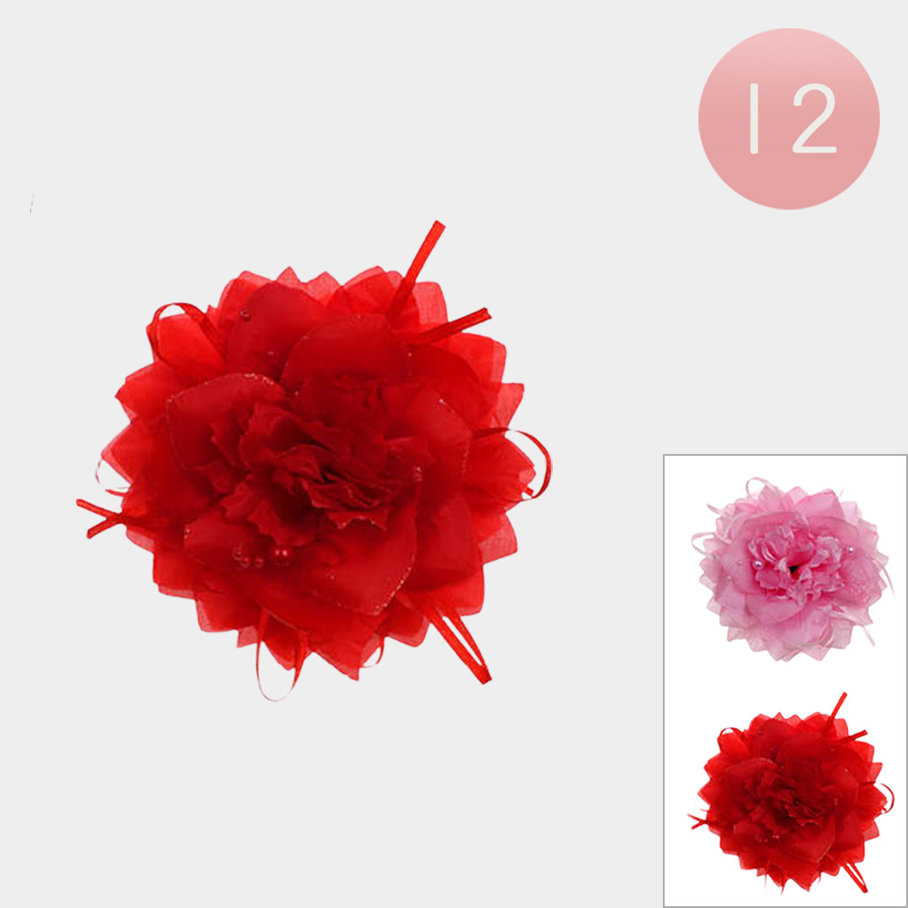12PCS - Fabric Petal Flower Hair Claw Pins
