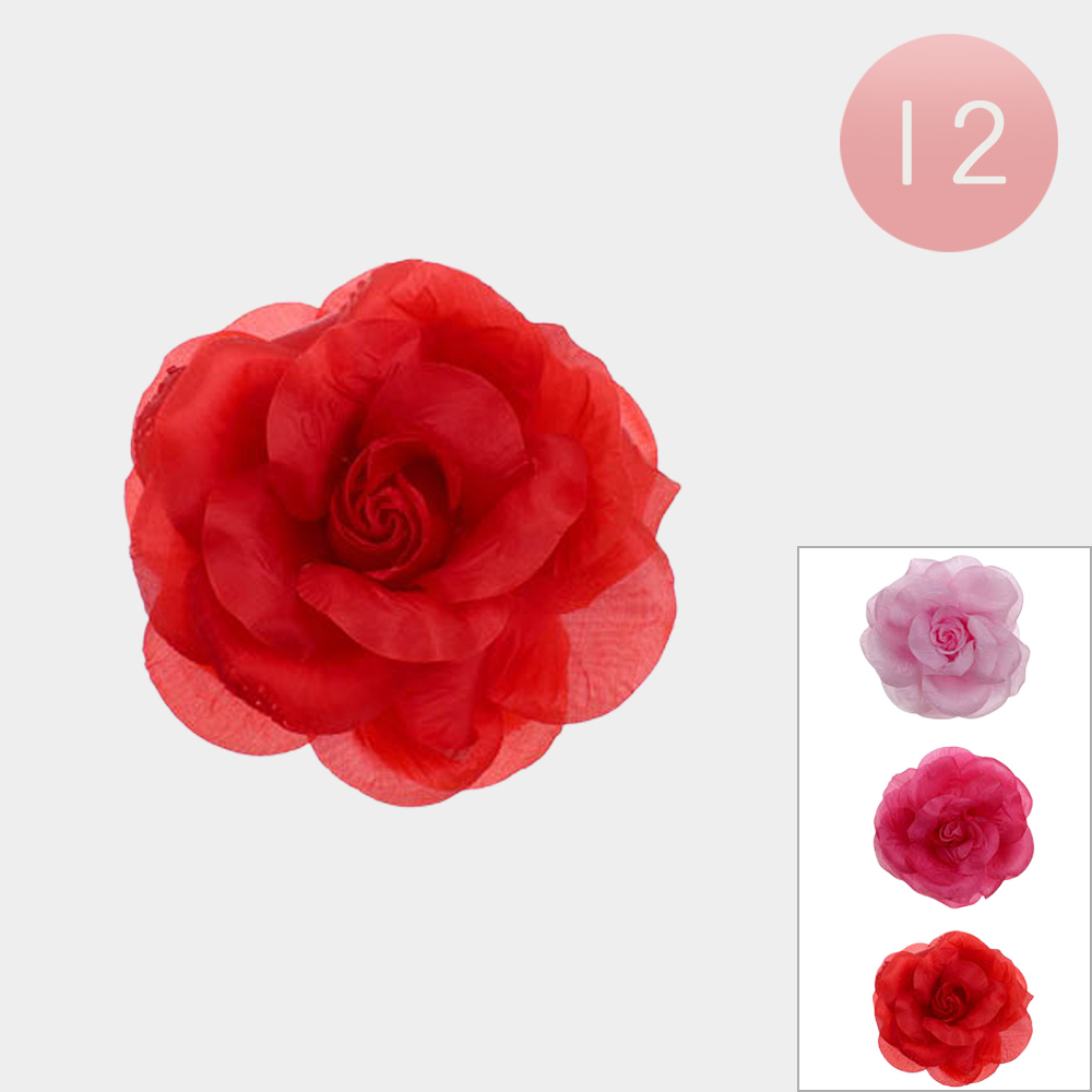 12PCS - Fabric Petal Rose Hair Claw Clips