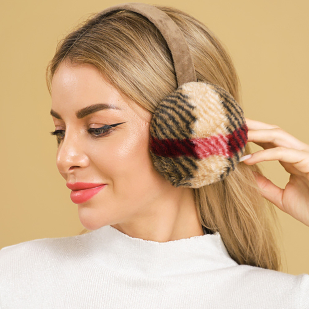 Details • Size : One Size • Material : 100% Polyester • Cozy plaid plush earmuffs designed with a soft headband for comfort and style. Perfect for keeping your ears warm during cold weather while adding a chic touch to your outfit. Lightweight and easy to wear, ideal for winter outings, holidays, and everyday wear.