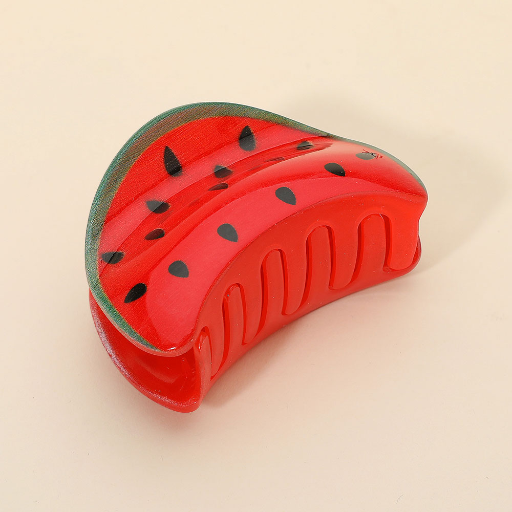 Details • Size : 3.5" X 2.25" • Add playful charm to everyday hairstyles with a bold slice design that holds hair securely while bringing a fun statement touch. Perfect for quick updos, half-up styles, or accent detailing, this eye-catching clip elevates casual and festival-ready looks alike.