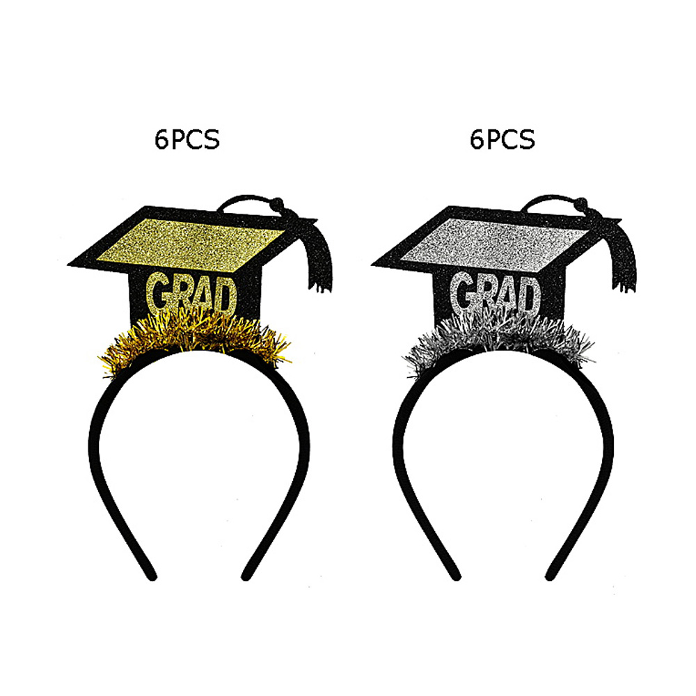 12PCS - Glittered GRAD Message Tinsel Graduation Hat Headbands