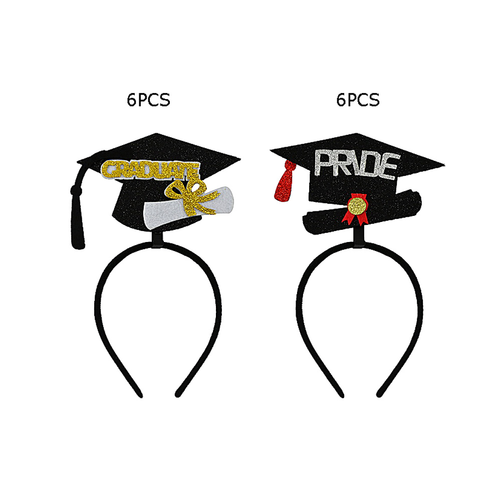12PCS - Glittered GRADUATE PRIDE Message Pointed Graduation Hat Headbands