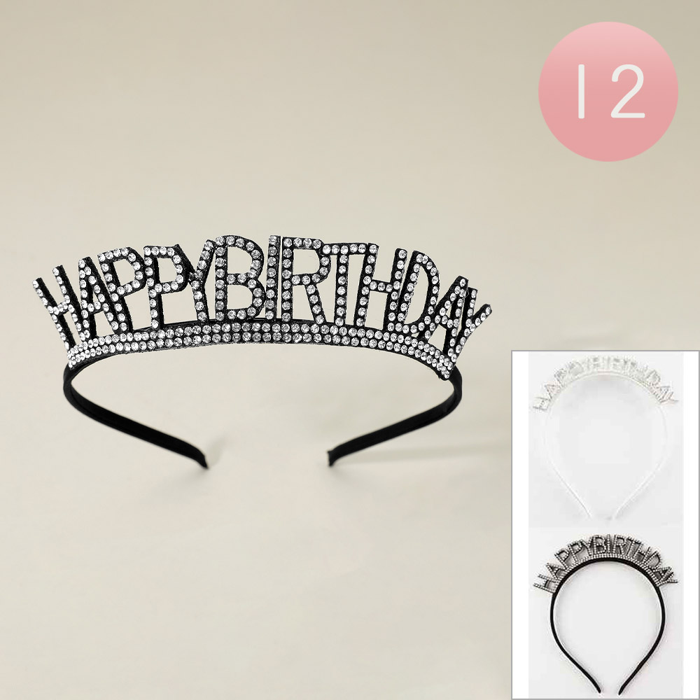 Details • Size : 1" H • Celebrate in style with this dazzling "Happy Birthday" rhinestone headband. Perfect for parties, photo ops, and festive occasions, this lightweight tiara-style accessory adds a fun, glamorous touch to any birthday outfit for all ages.