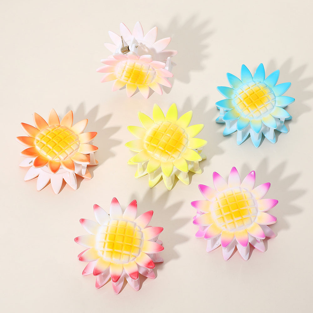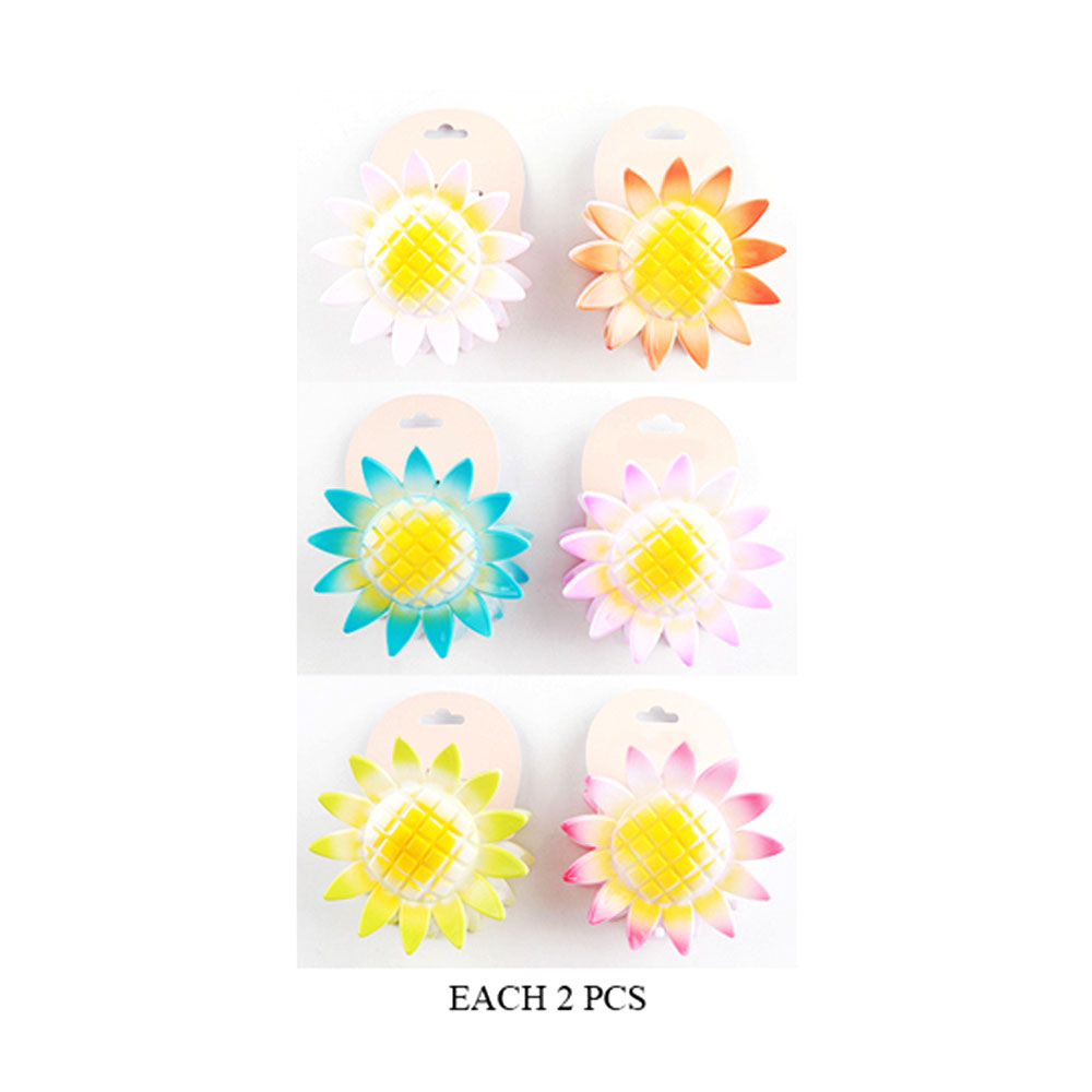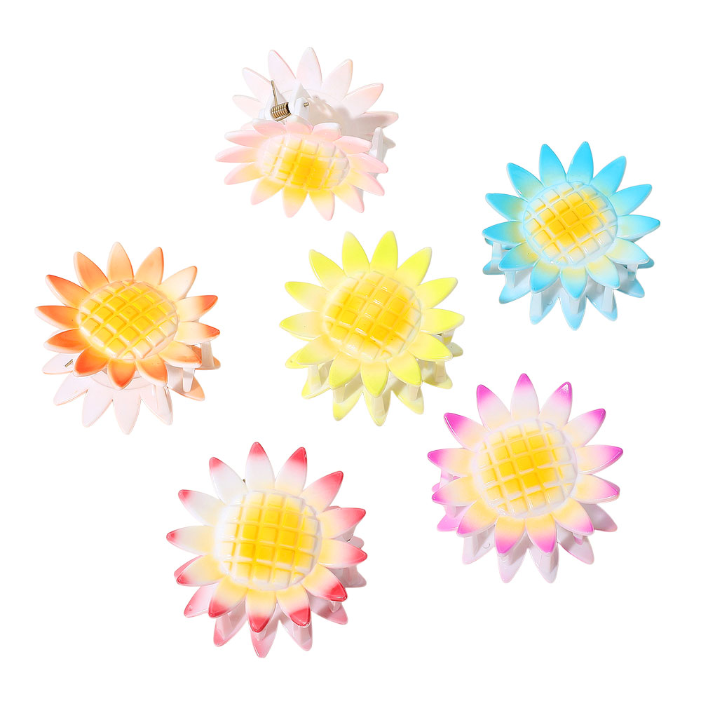• Brighten up your hairstyle with these cheerful sunflower claw clips! Featuring gradient pastel petals and strong grips, this 6-pack adds a fun floral touch to any look.