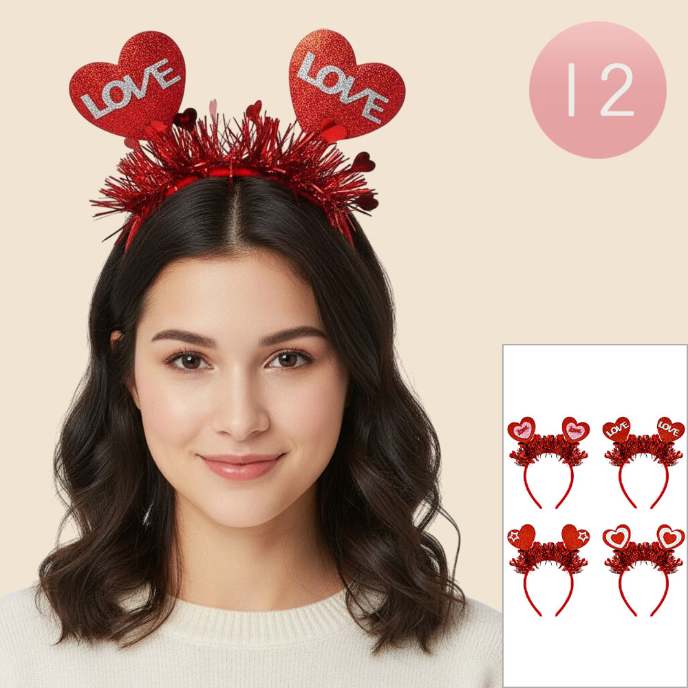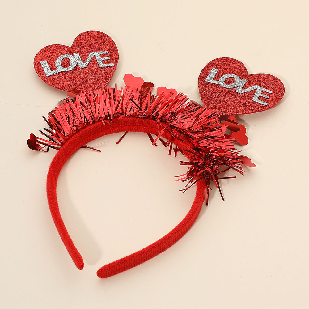 Details • Size : 3.75" H • A fun heart-themed headband designed with playful love accents and festive tinsel details, perfect for parties, themed events, holidays, and photo moments. Lightweight and comfortable to wear, it adds a cheerful touch to costumes, celebrations, and special occasions with effortless style.