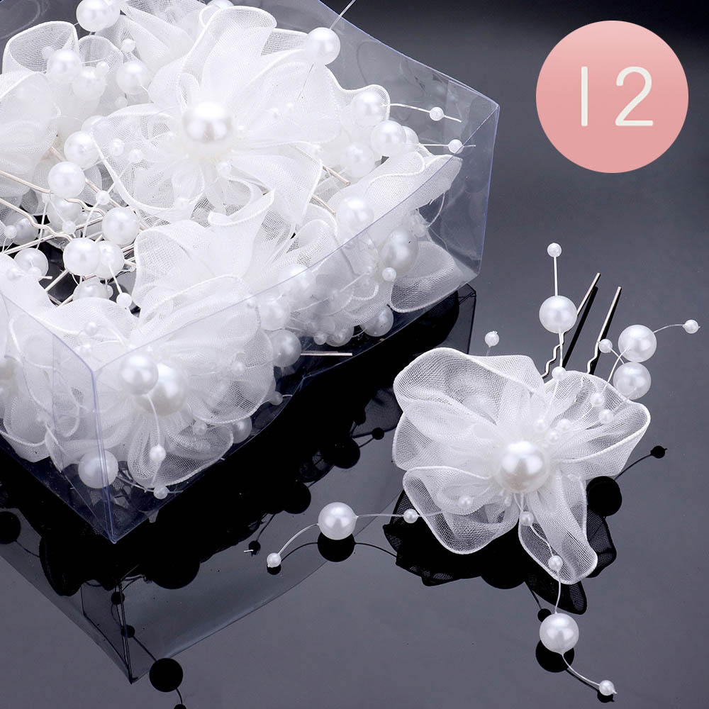 12PCS - Mesh Floral Pearl Hair Comb Pins