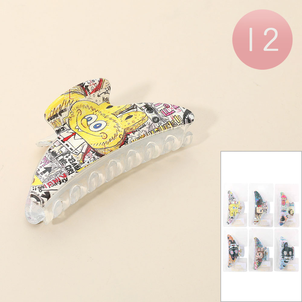 Details • Size : 3.5" X 1.5" • This monster bunny character illustration print hair claw clip brings a bold, expressive touch to everyday styling while keeping hair securely in place. Its curved shape and strong grip make it easy to wear, adding a fun artistic accent that enhances casual or playful looks with effortless charm.
