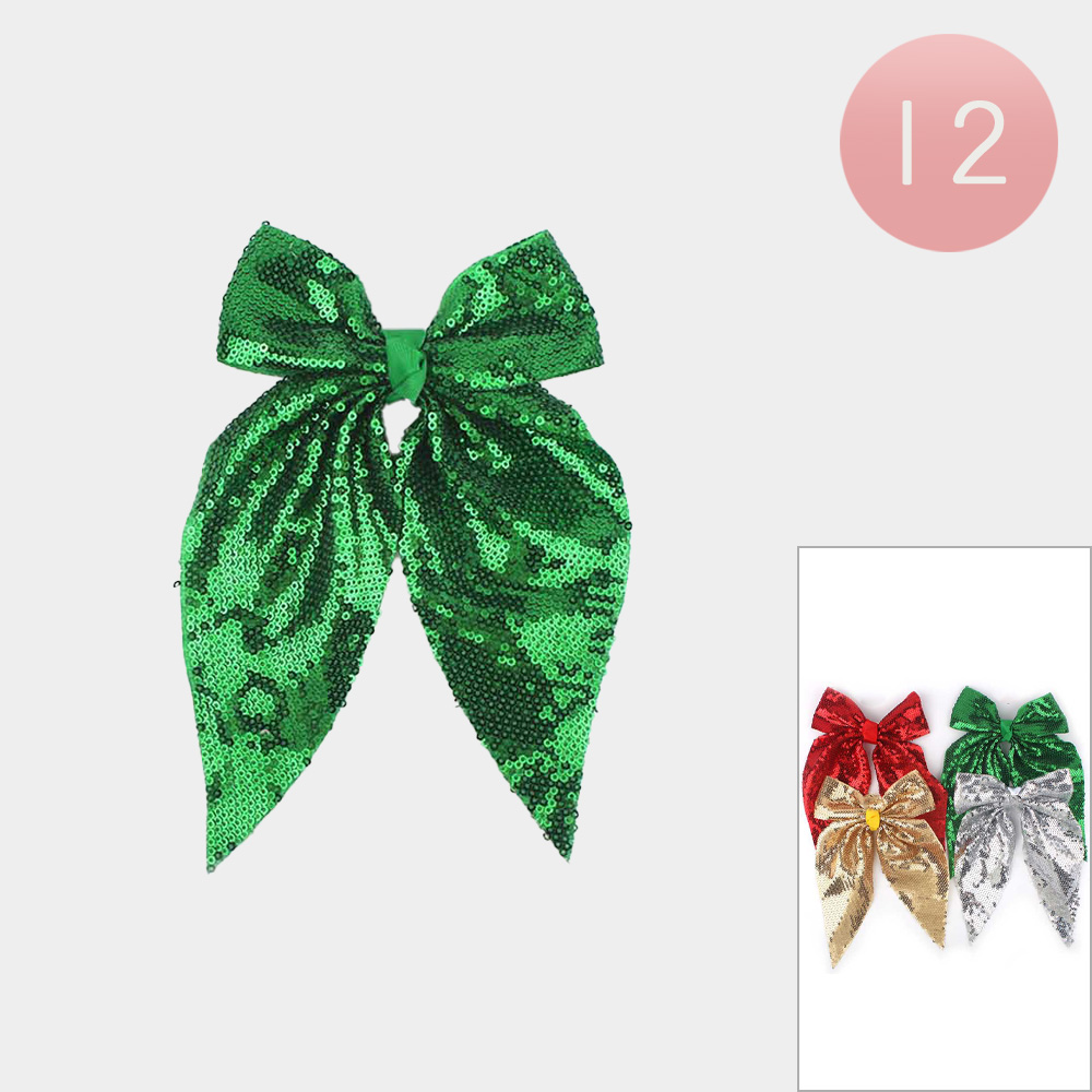 Details • Size : 5.25" X 7" • Alligator Snap • Add sparkle to your look with a sequin bow hair clip designed for bold, festive style. Perfect for parties, celebrations, or holiday events, this oversized accessory delivers eye-catching shine and playful charm, making it an ideal finishing touch to elevate any outfit.