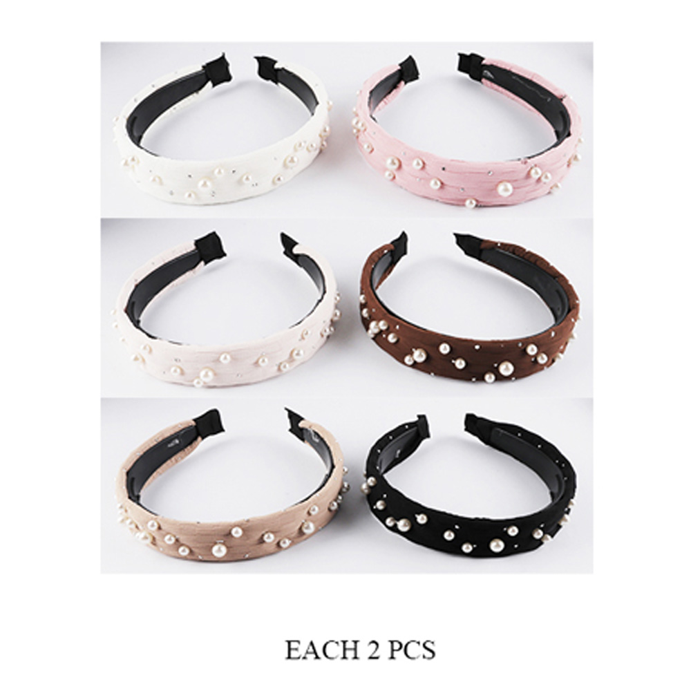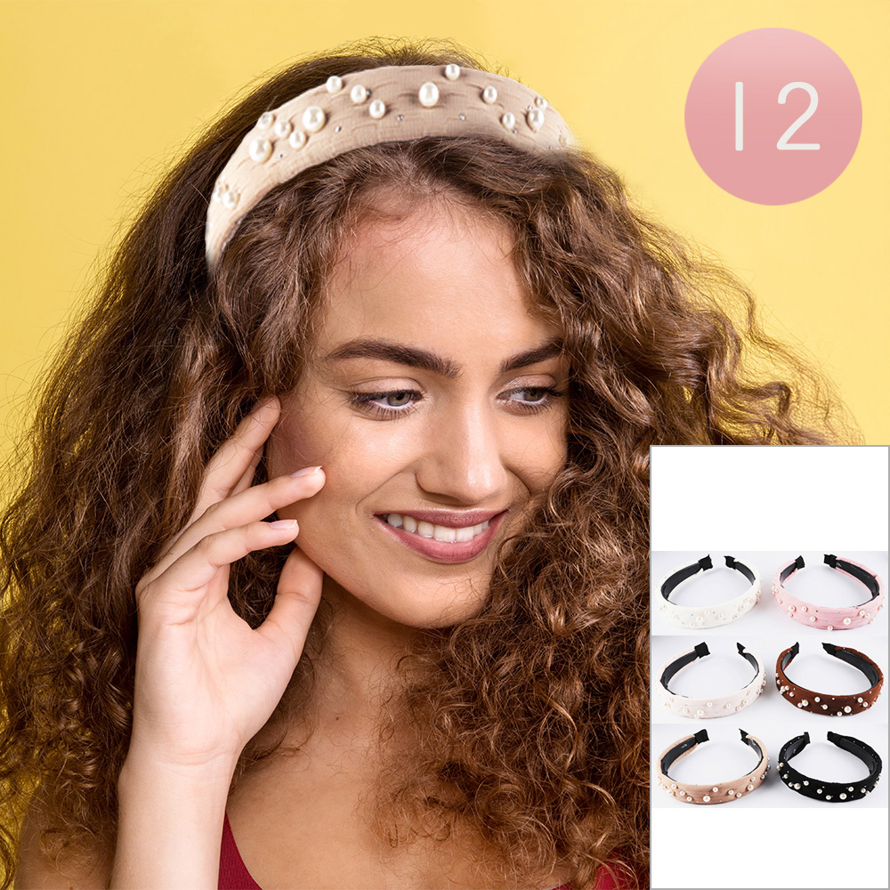 12PCS - Pearl Bling Stone Embellished Fabric Headbands