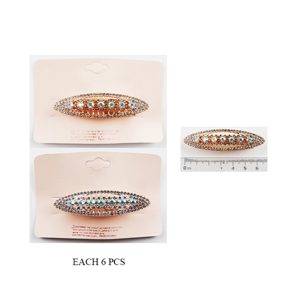 Details • Size : 2.25" X 0.6" • Add a refined touch to your look with this oval barrette adorned with radiant rhinestones. Perfect for securing hair with style, it’s a versatile accessory for both everyday use and special events. • Lead and Nickel Compliant