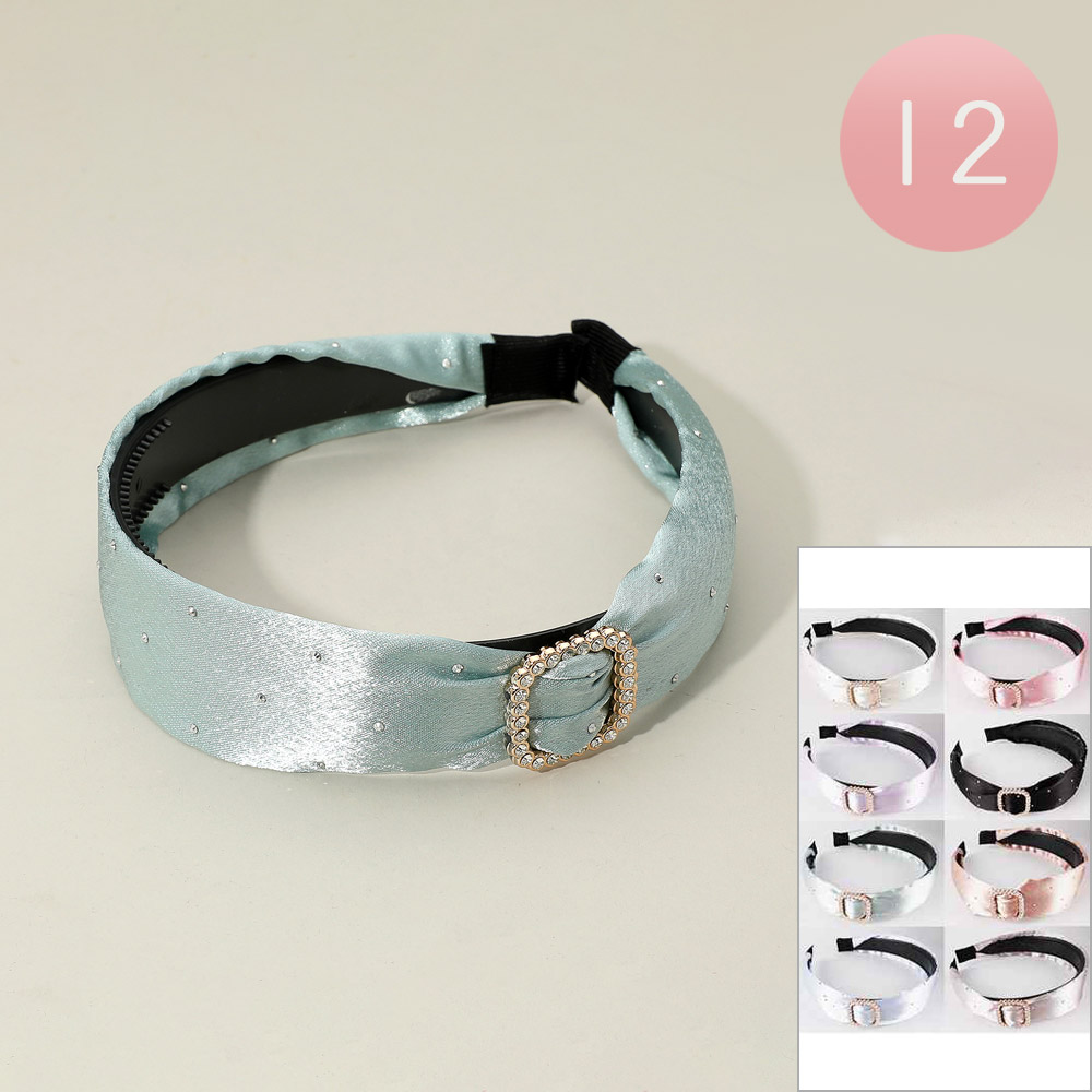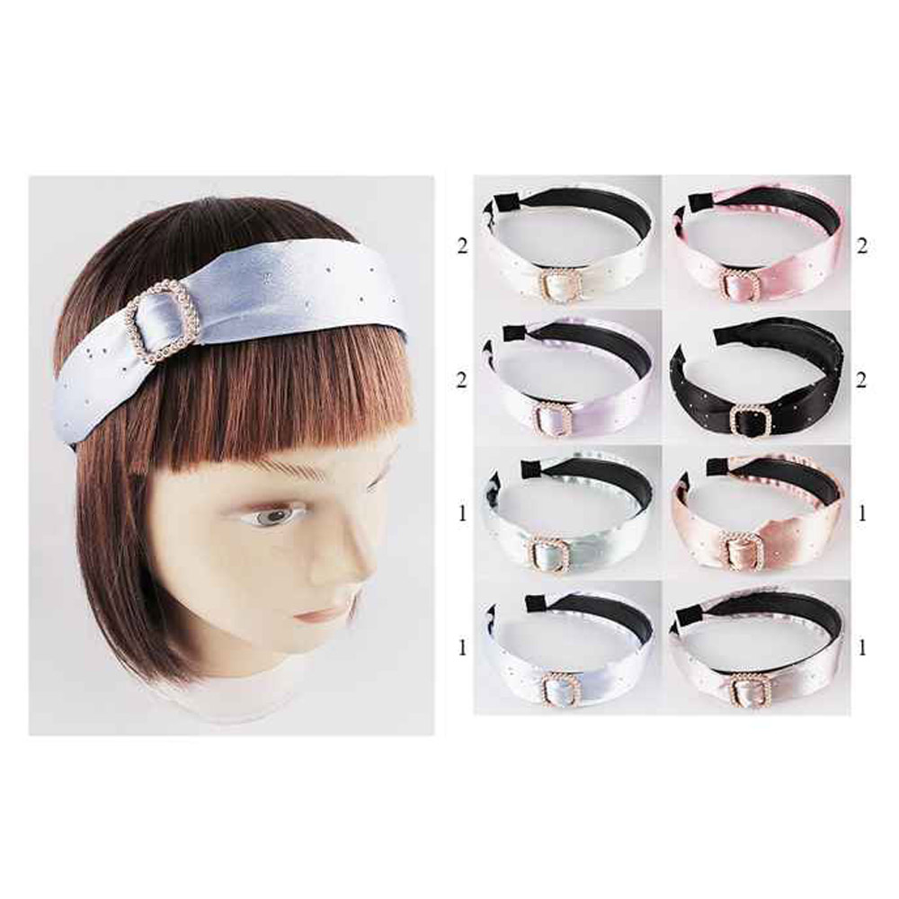 Details • Size : 1.4" H • Elegant satin headband featuring a rhinestone buckle and delicate stud accents. A sophisticated accessory for everyday wear or special events, offering a secure and stylish fit that enhances any hairstyle with effortless charm.