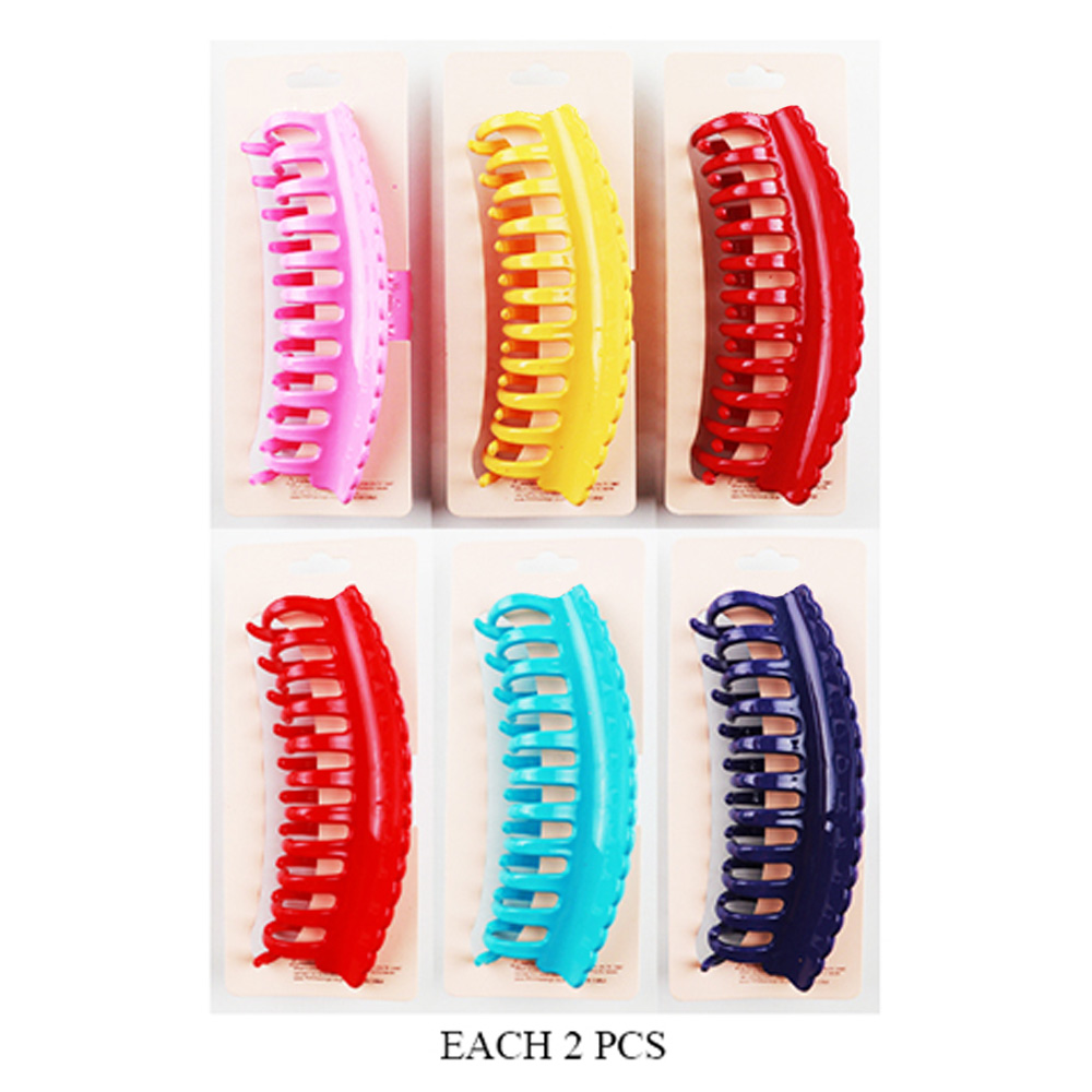 Details • Size : 5.75" X 1.75" • Secure your hairstyle with this curved banana hair clip designed for a comfortable, all-day hold. Its claw-style grip works for various hair types, making it perfect for quick updos, buns, or casual looks. Great for daily wear or travel.