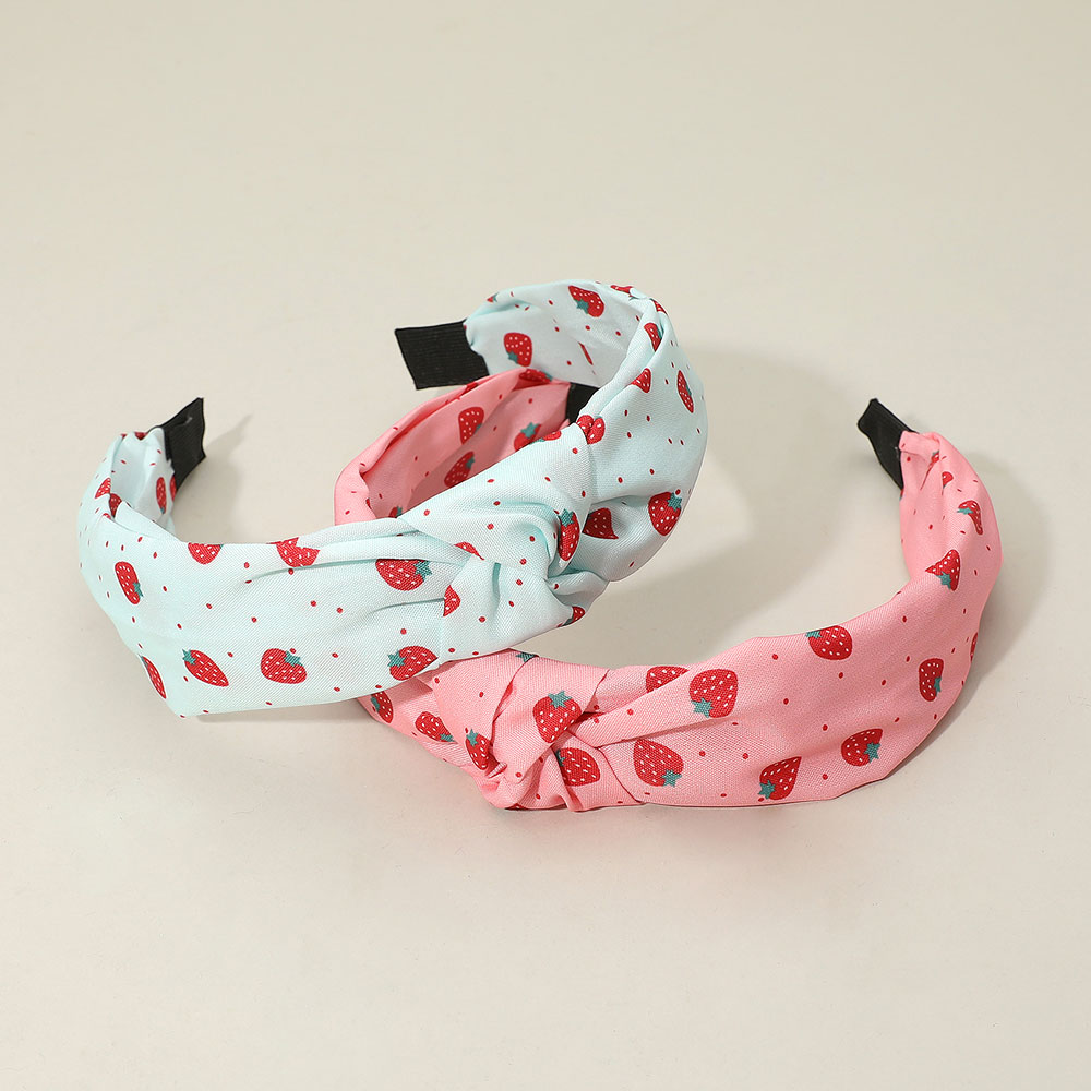Details • Size : 2" H • Playful and charming strawberry print headbands featuring a stylish twisted knot design. A comfortable and trendy choice for everyday looks, festivals, or themed parties. Adds a sweet accent to any hairstyle while keeping hair neatly in place all day long.