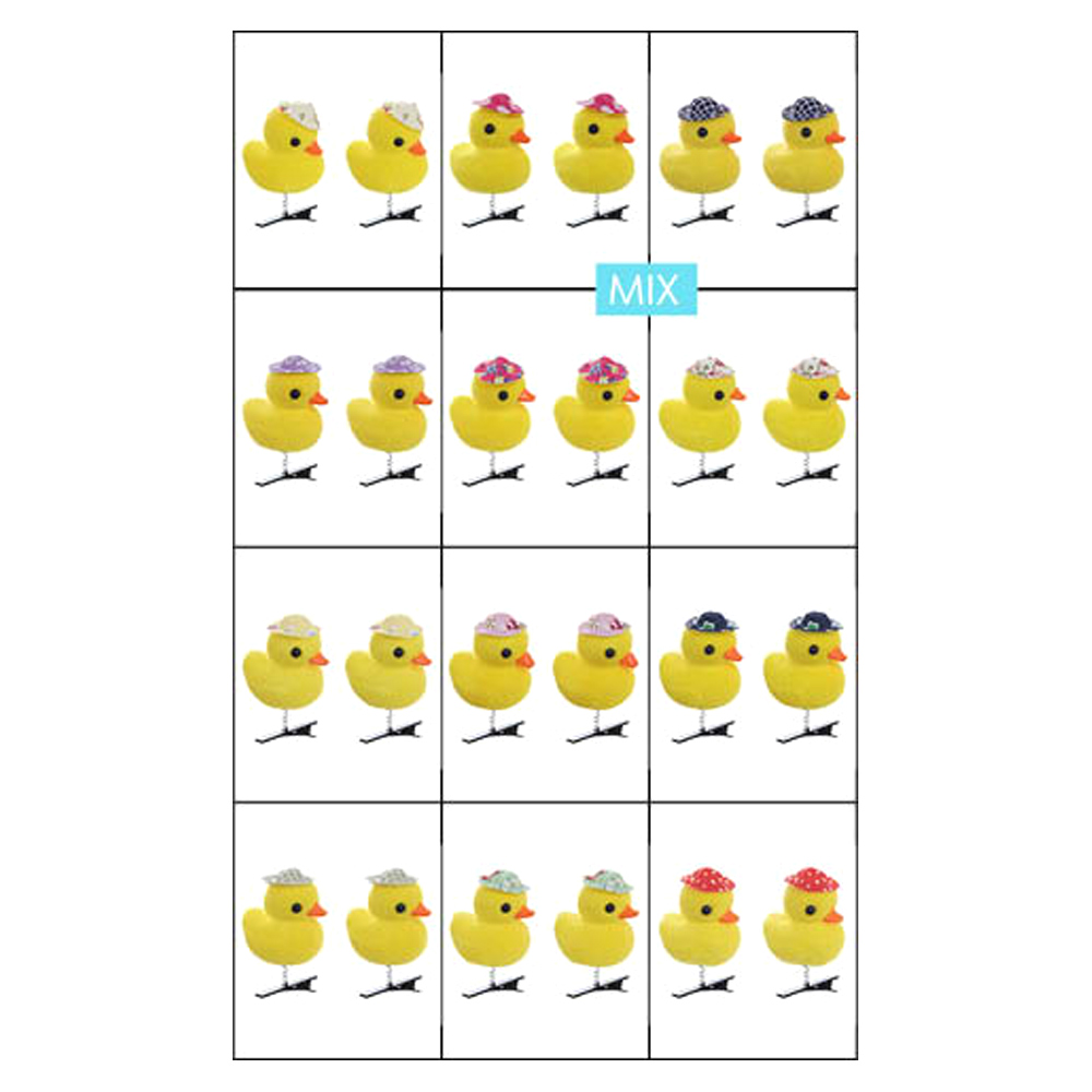 12PCS - Yellow Duck with Flower Hat Spring Alligator Snap Hair Clips