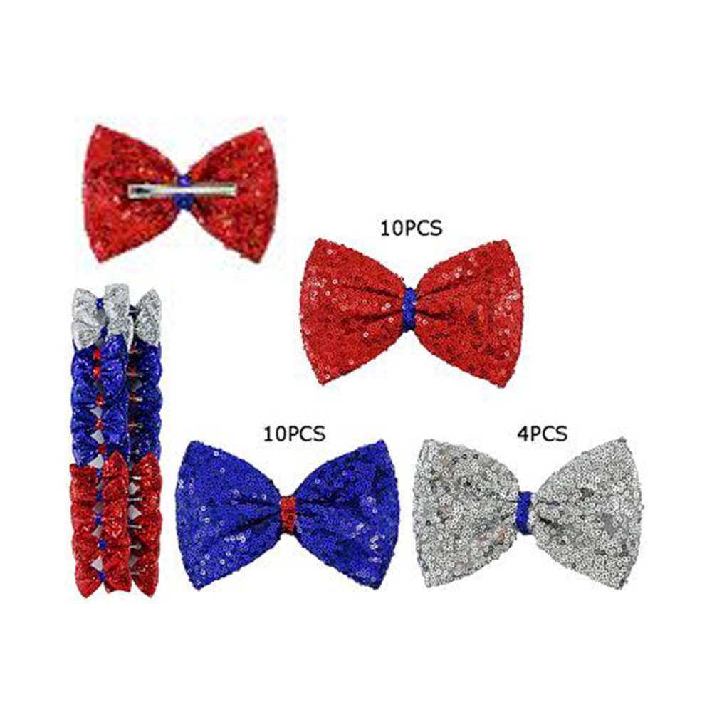 24PCS - American USA Flag Theme Colored Sequin Bow Alligator Snap Hair Pins