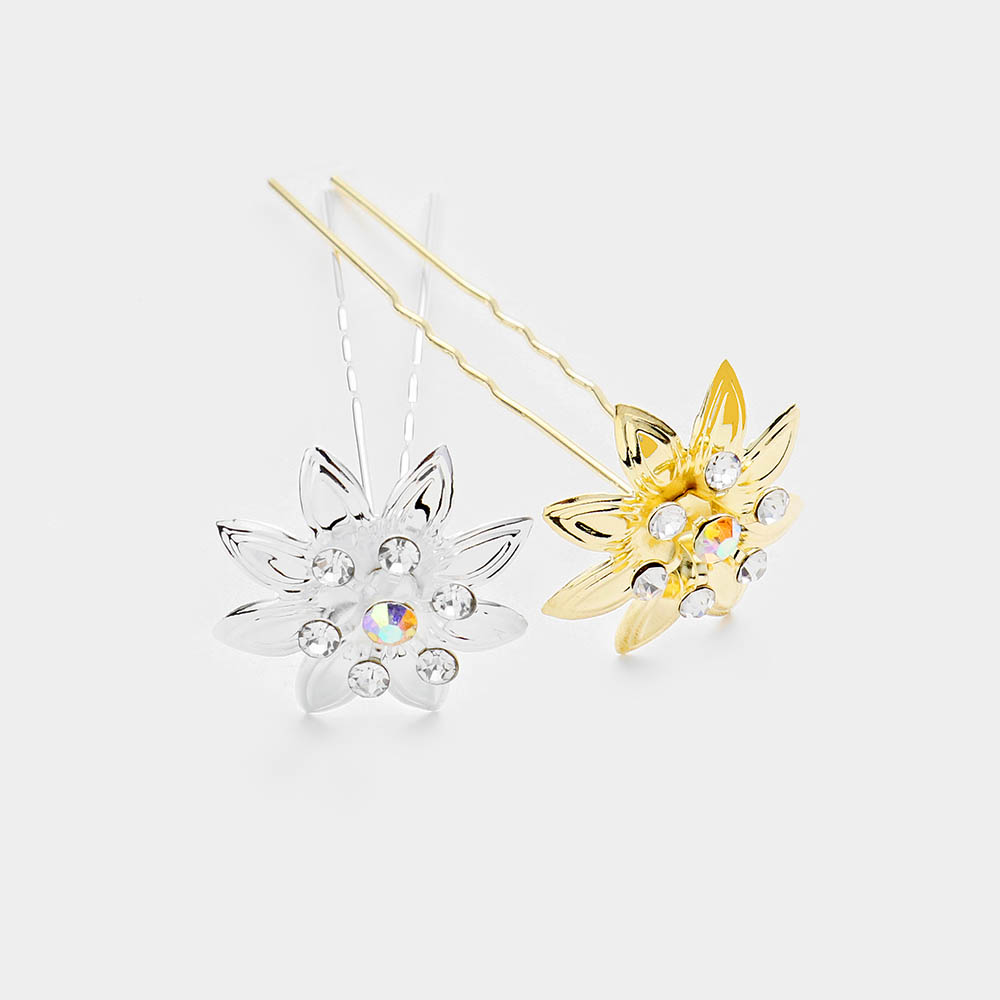 24PCS - Round Crystal Floral Hair Comb Pins