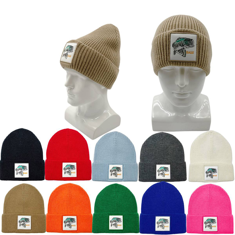 Details • Size : One Size • Material : 100% Acrylic • Perfect for outdoor lovers, this 12-pack of knit beanies features a bold bass fish patch design. With a cozy ribbed fit and assorted color options, these beanies offer warmth, comfort, and personality—great for fishing trips, casual wear, or gifting with a rustic edge.