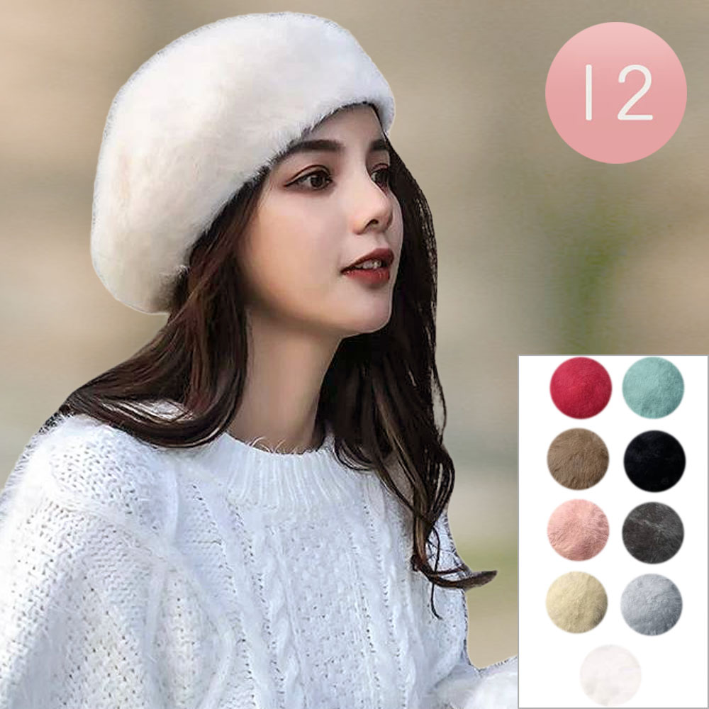 12PCS - Fuzzy Winter Knit Beret Hats