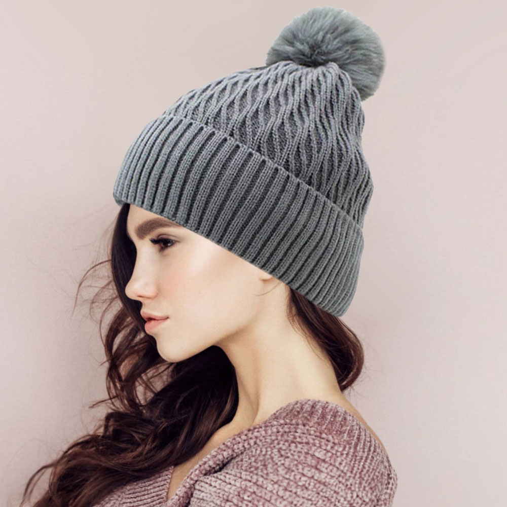 Details • Size : One Size • Material : 100% Acrylic • Add warmth and style to your winter look with this ribbed knit beanie featuring a soft cuff and fluffy pom pom. Perfect for cold weather, this chic hat delivers comfort and seasonal charm in a variety of colors.