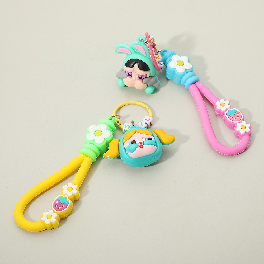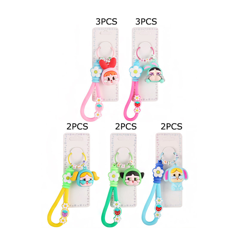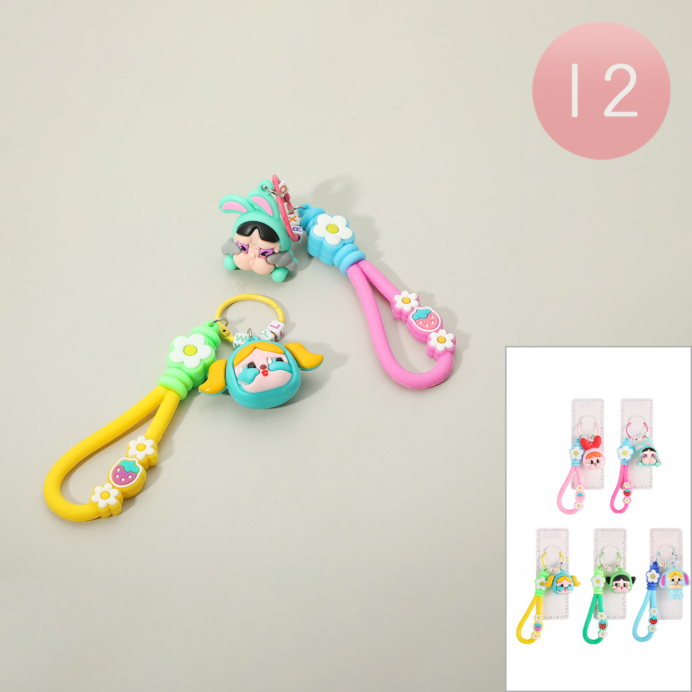 Details • Size : 2" X 4.25", 5" L • Set of 12 cartoon character keychains with playful strap designs and fun details. Perfect for party favors, goodie bag fillers, or everyday use to decorate backpacks, purses, and keys. Lightweight and durable, these keychains add a cute and whimsical touch to any accessory.