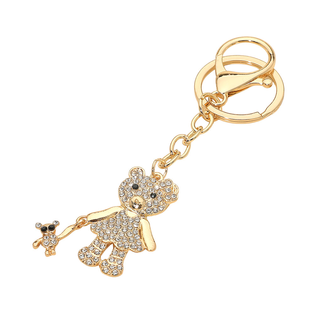 Details • Size : 4" L, 1.5" X 3" • Crystal Bear Keychain Charm Accessory features a sparkling bear pendant with a mini accent charm and secure clasp design. Ideal for keys, bags, or gifting, it provides eye-catching detail while remaining lightweight, durable, and easy to attach for everyday use.