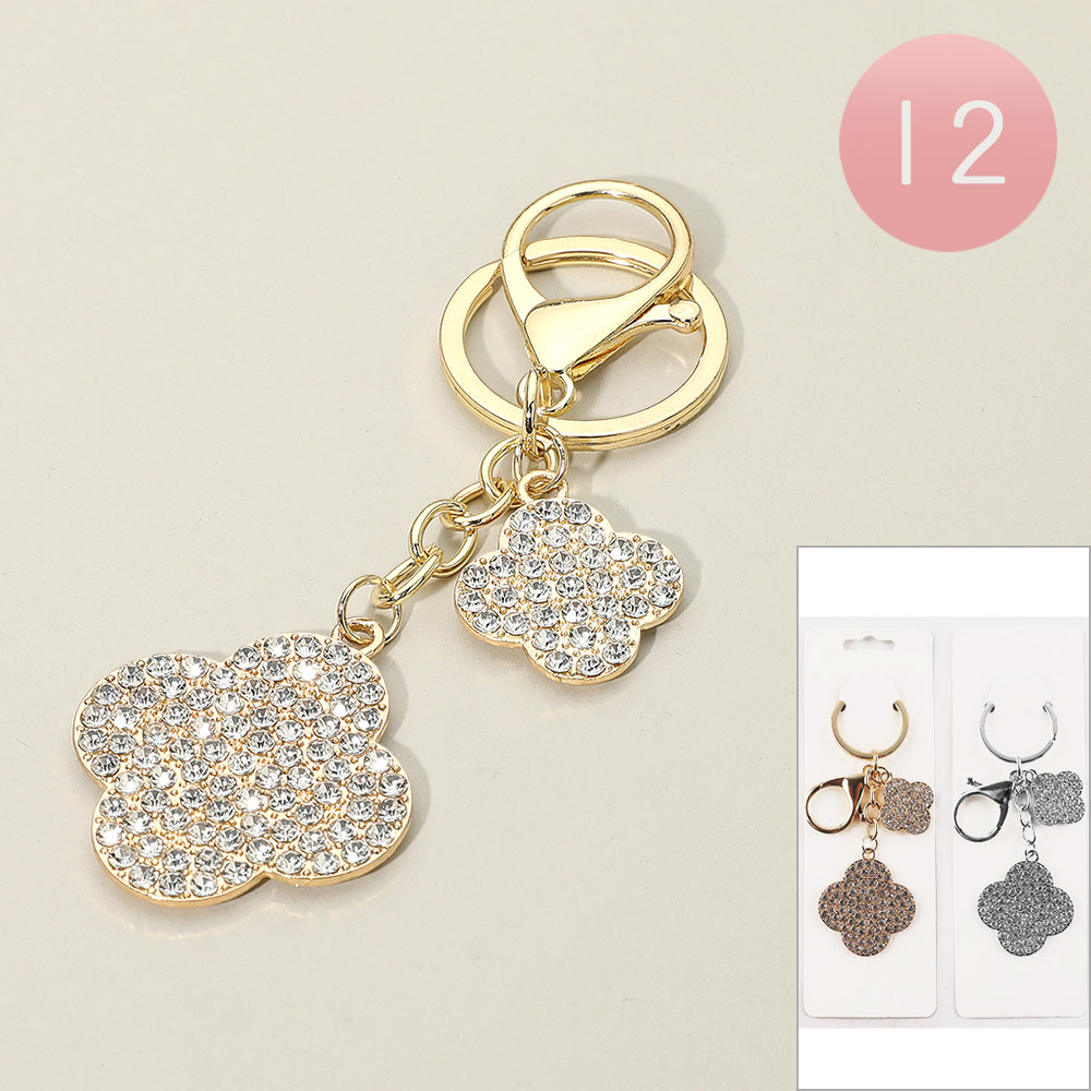 12PCS - Sparkling Stone Paved Double Quatrefoil Keychains