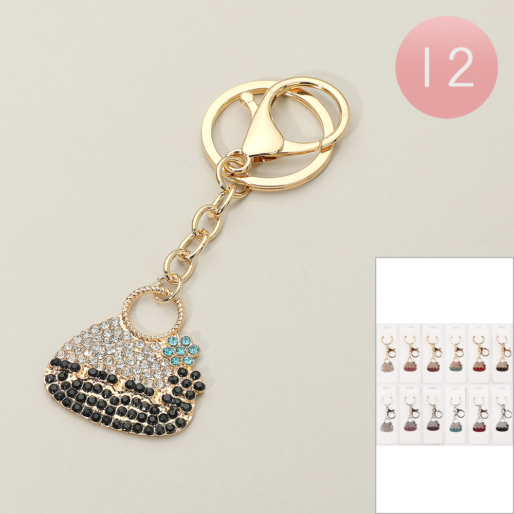 Details • Size : 1.5" X 2.75", 3.5" L • Add a stylish sparkle to your accessories with this Crystal Handbag Keychain, featuring a rhinestone-embellished purse design for a touch of glamour. Perfect for keys, handbags, or backpacks, this elegant charm makes a fashionable statement and a lovely gift for any occasion. • Lead and Nickel Compliant