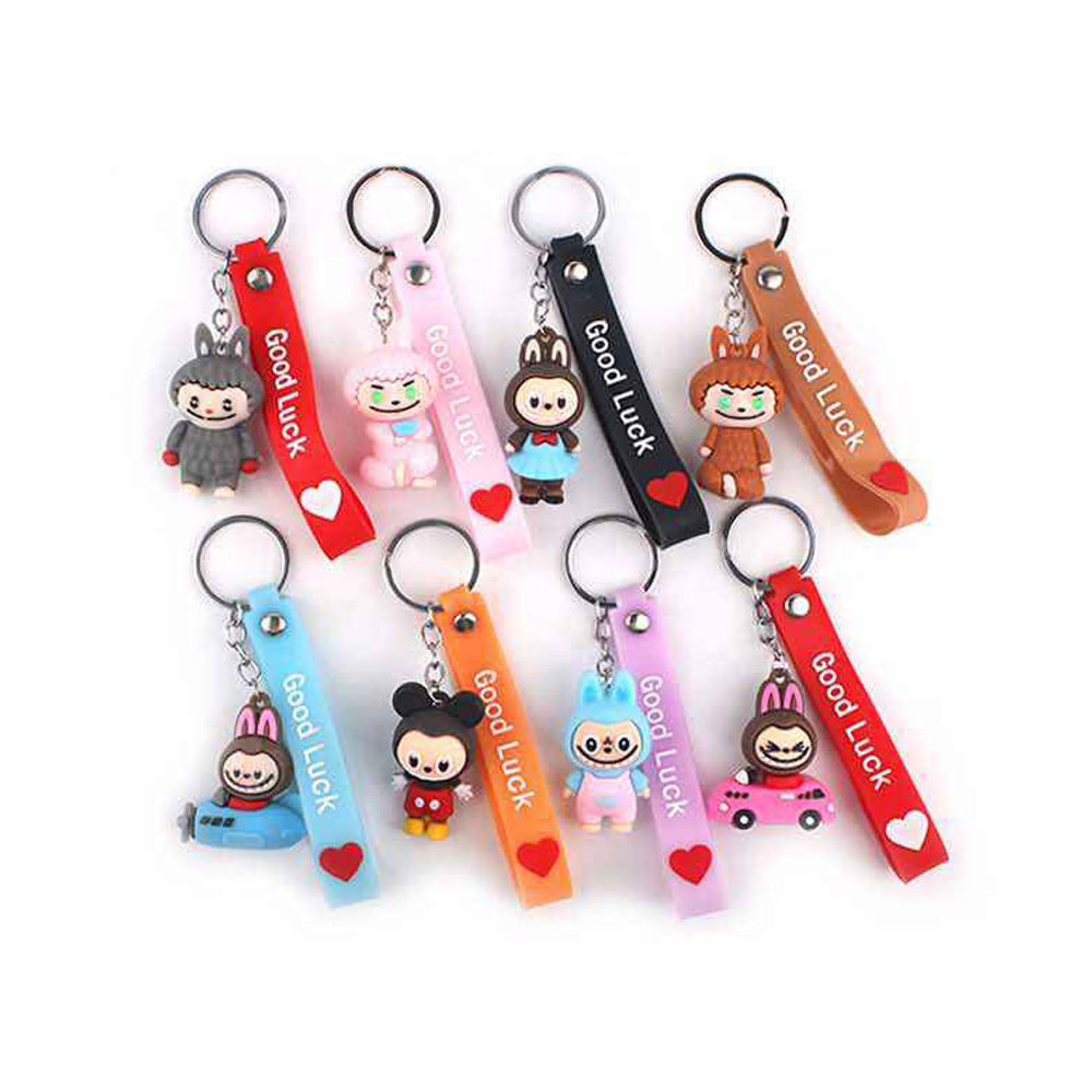 Details • Size : 5.25" L, 2" X 1.75" • Cute keychain featuring a playful character charm and a wrist strap with “Good Luck” text. A fun accessory for bags, keys, or backpacks, designed to add a touch of charm and positivity to your everyday look.