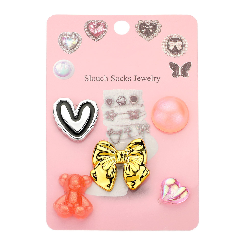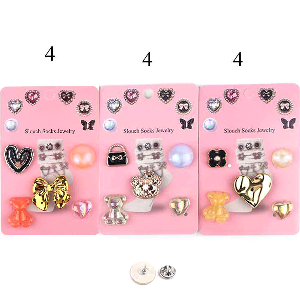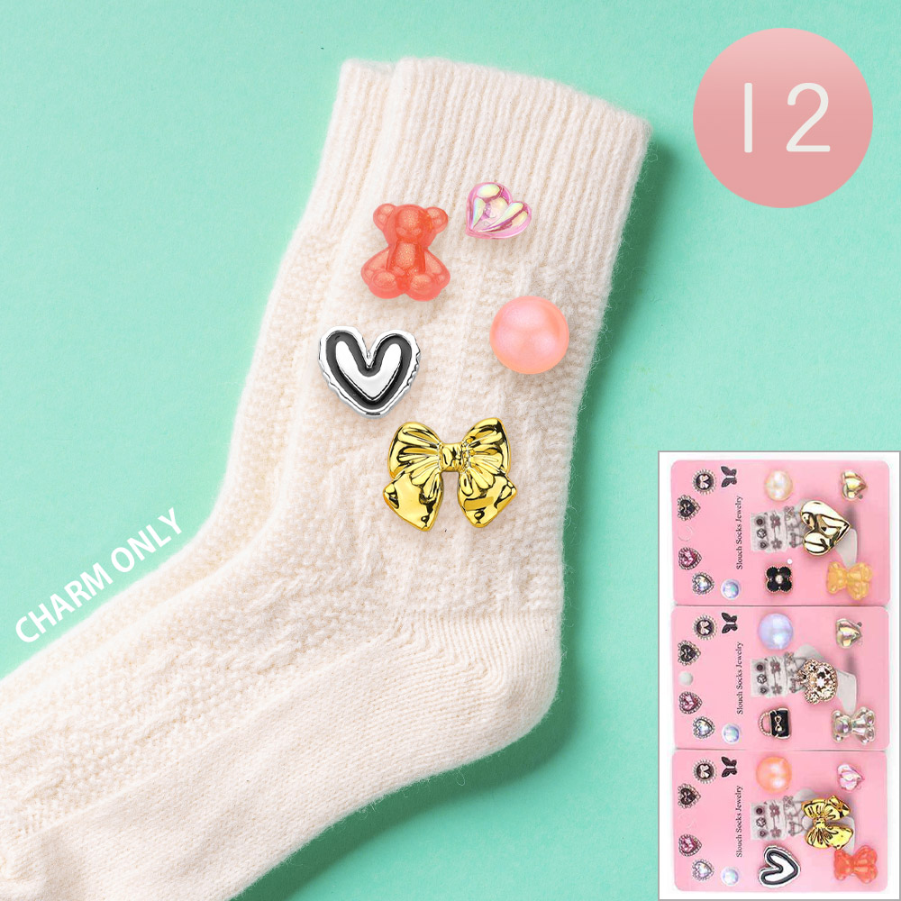 12 SET OF 5 - Heart Bow Teddy Bear Flower Pearl Pin Trendy Slouch Socks Charm Jewelry