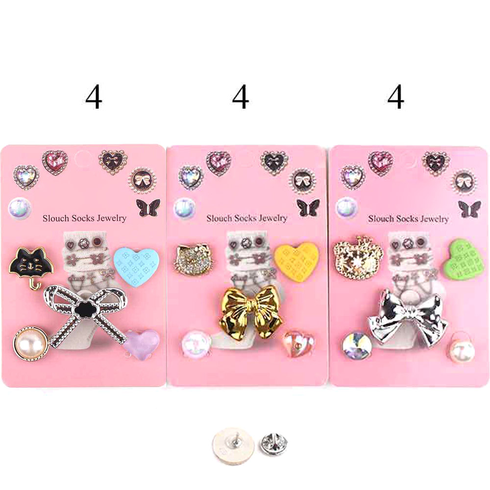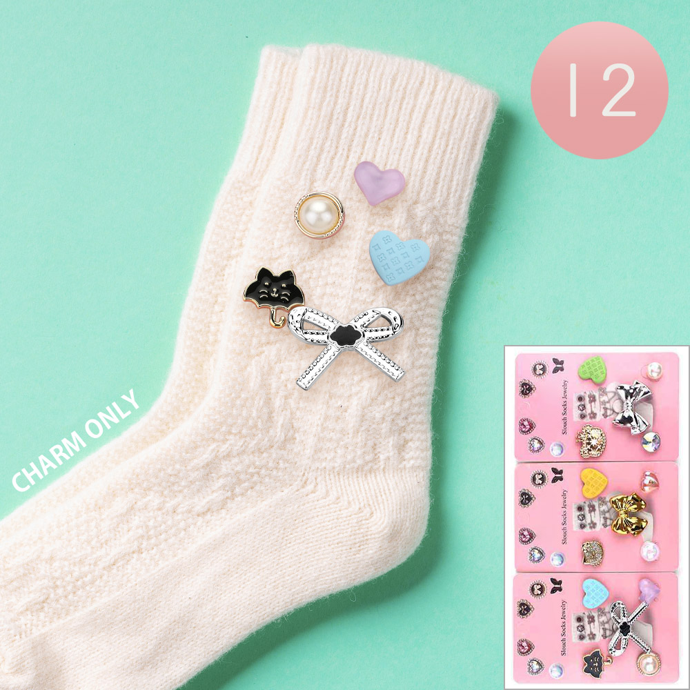 12 SET OF 5 - Metal Bow Pearl Heart Kitty Pin Trendy Slouch Socks Charm Jewelry