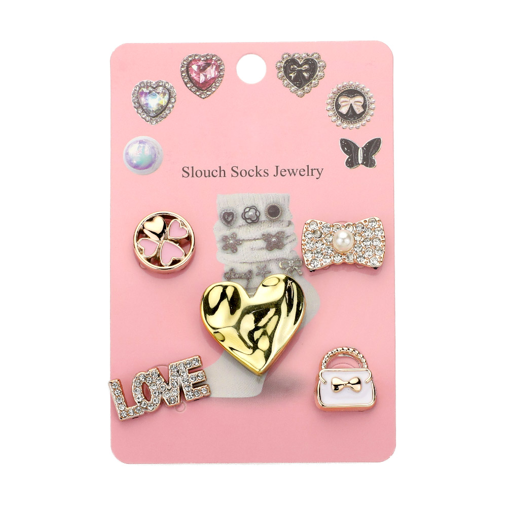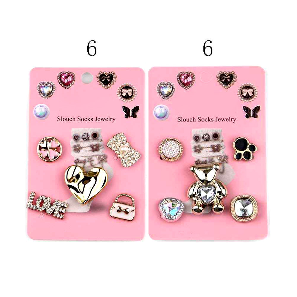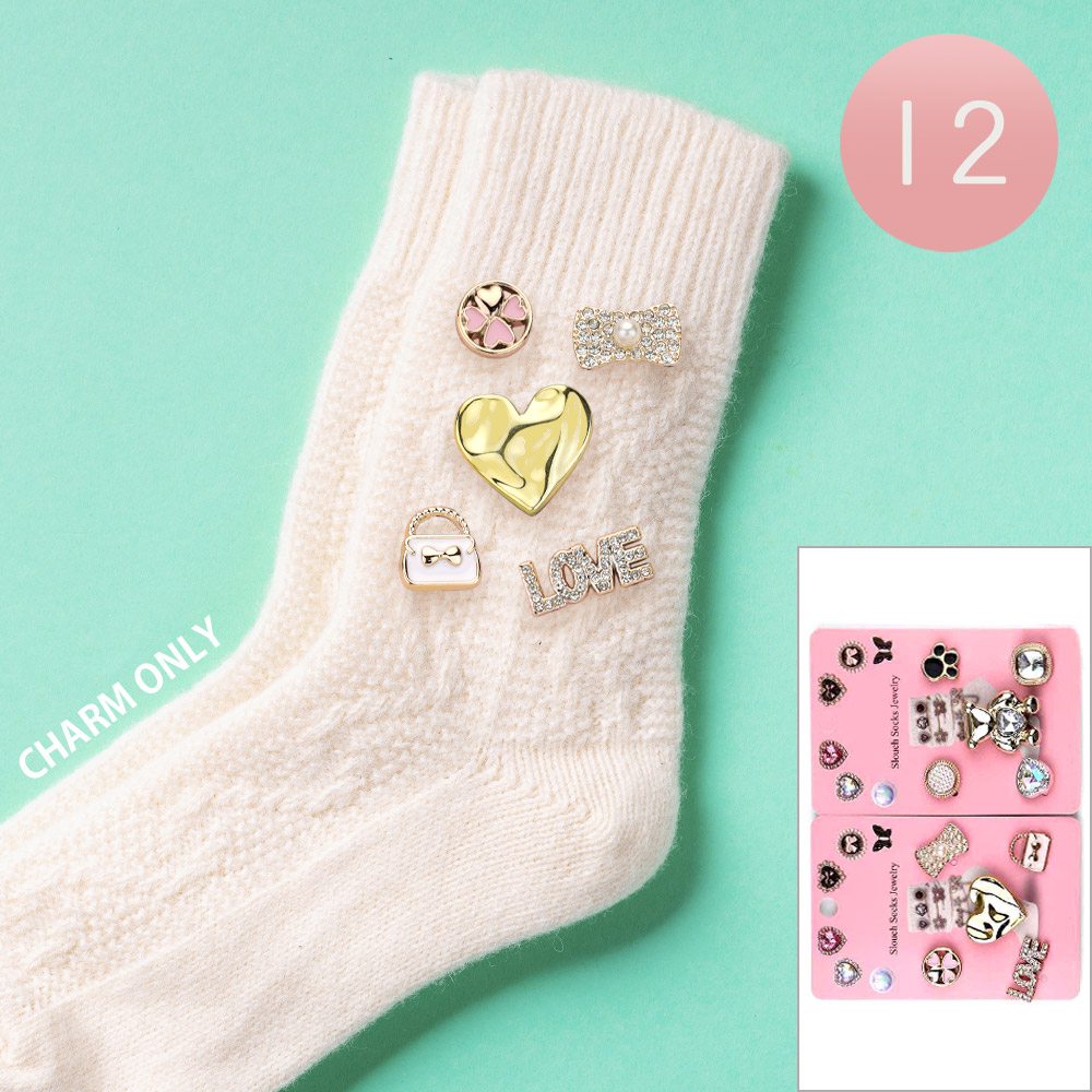 12 SET OF 5 - Metal Heart Teddy Bear Pearl Bow Stone Paved LOVE Pin Trendy Slouch Socks Charm Jewelry