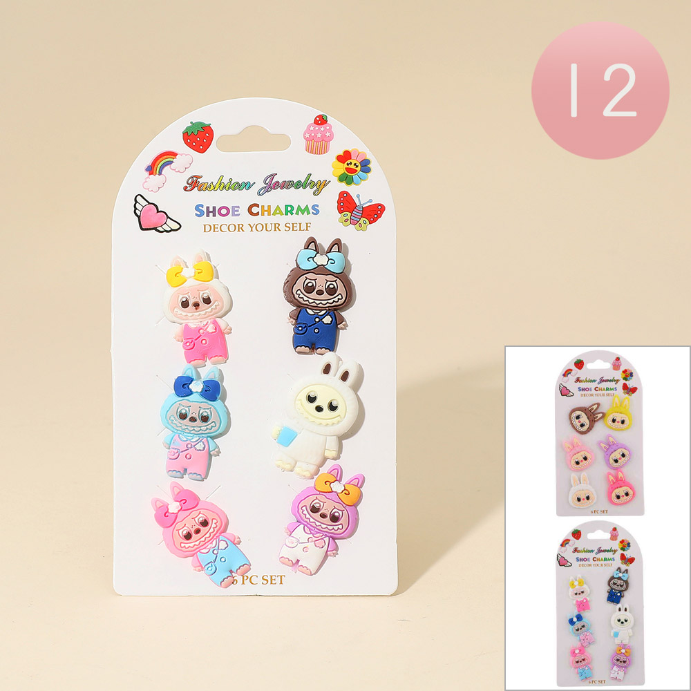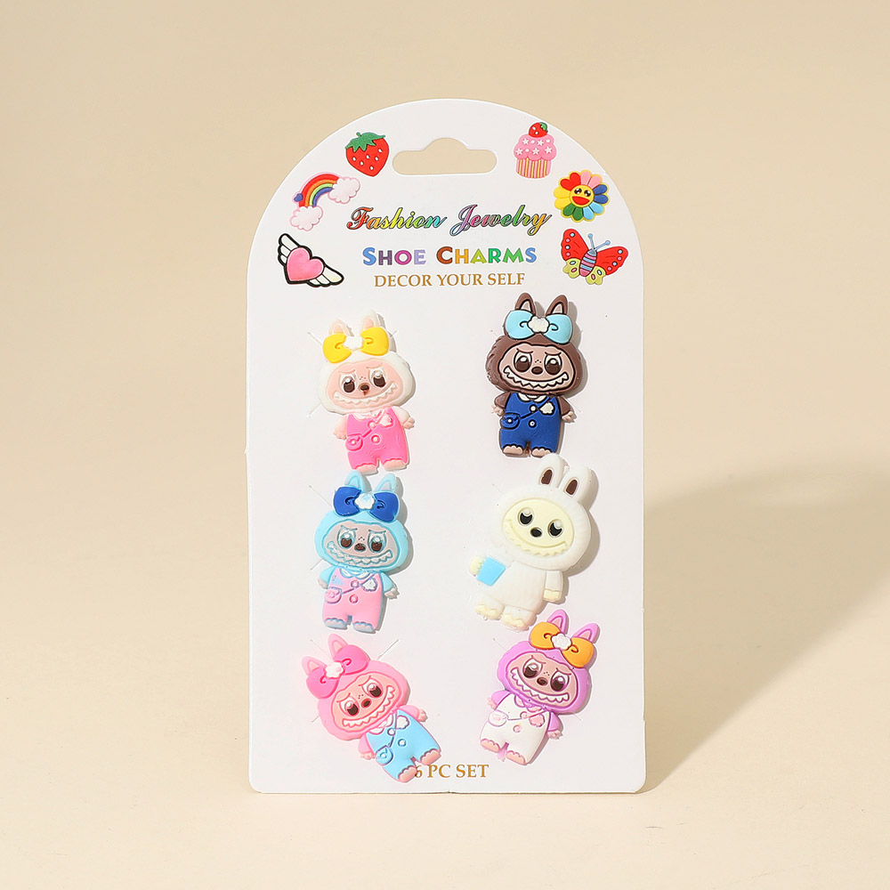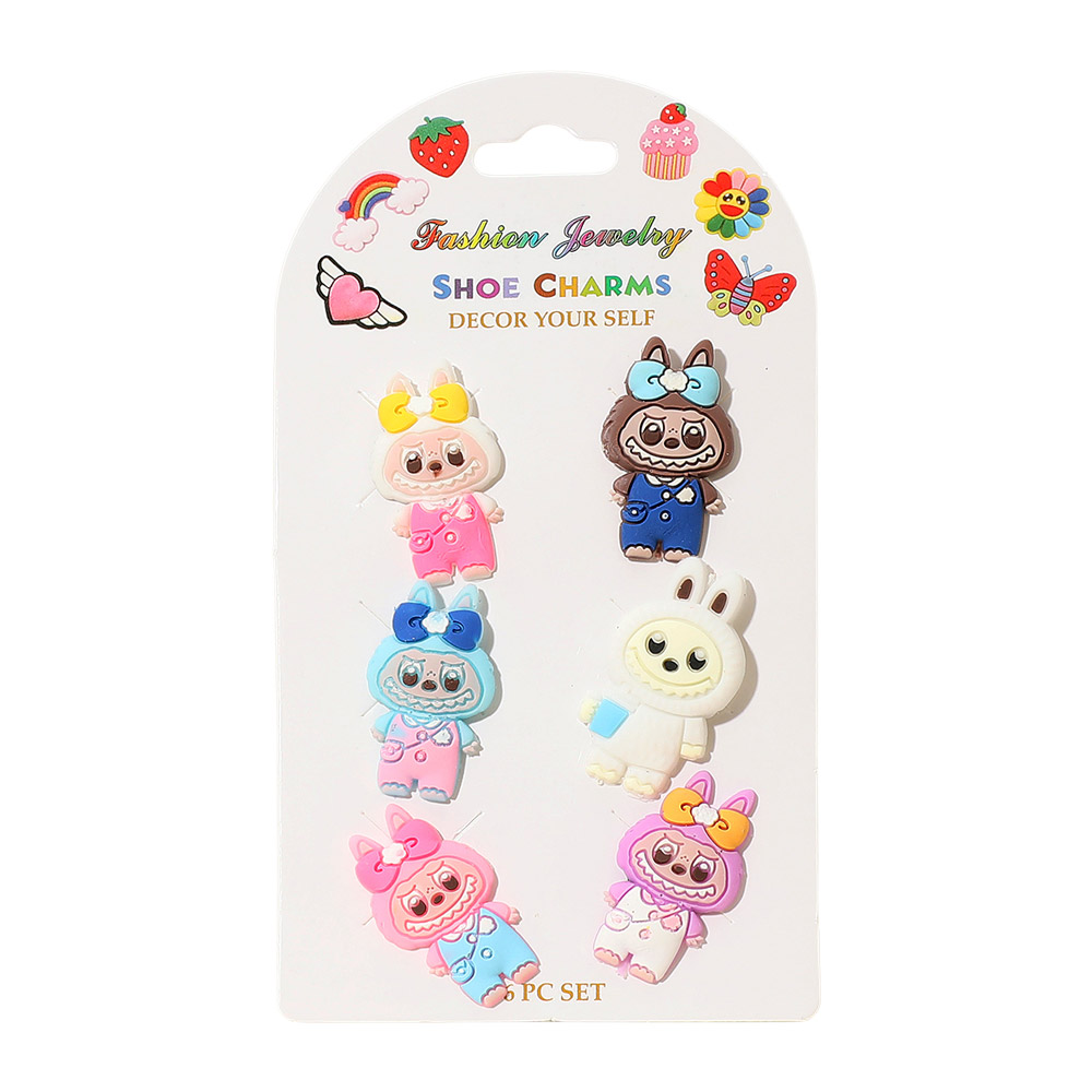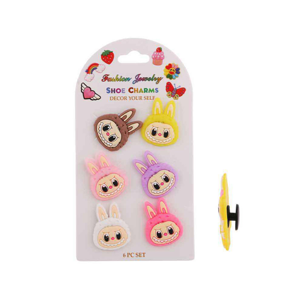 Details • Size : 1.25" L • A fun 6-piece shoe charm set featuring playful monster bunny character designs made to personalize clogs and sneakers. Easy to attach and swap, perfect for kids, teens, and gift giving, adding cheerful personality, style variety, and everyday creative expression.