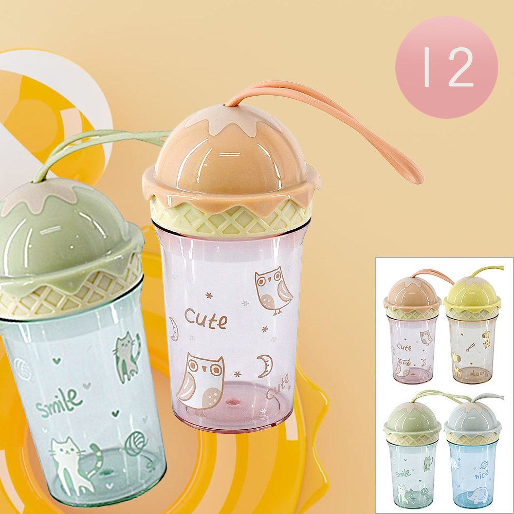 12PCS - Animal Print Ice Cream Cone Water Bottles